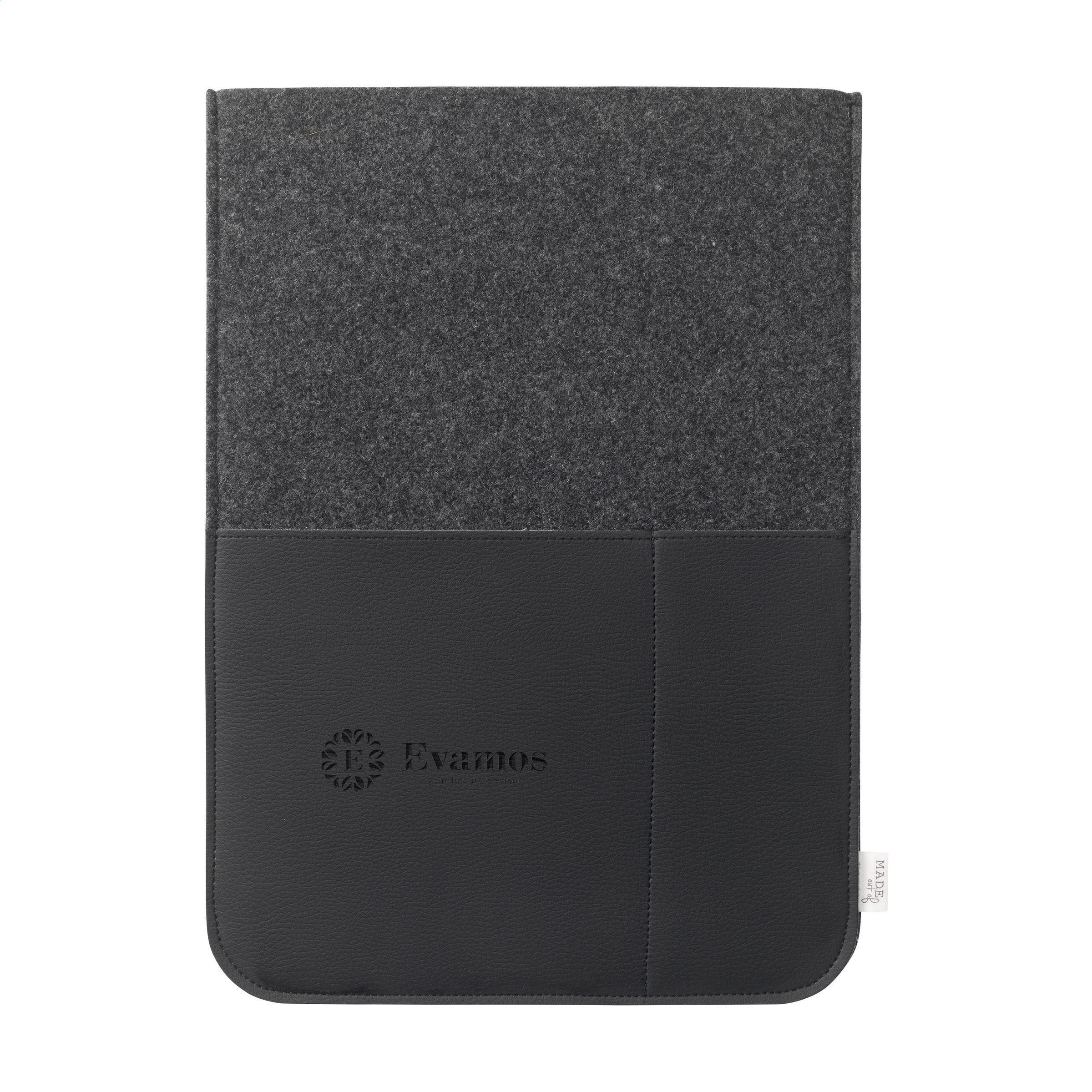 Eine minimalistische, aber stilvolle 16-Zoll-Laptoptasche aus recyceltem Wollfilz und veganem Leder. Ein Produkt der Marke MADE out of. Der Wollfilz besteht zu 50% aus recyceltem Material, zu 30% aus Wolle und zu 20% aus PE. Die Tasche ist auf der Vorderseite mit 2 Einsteckfächern versehen. Diese sind aus wunderschönem veganen Leder aus dem recycelten Fruchtfleisch von Äpfeln gefertigt. Es sieht aus wie echtes Leder und fühlt sich auch so an – und die Fächer verleihen der Tasche eine luxuriöse Ausstrahlung. Geeignet für die Aufbewahrung und den sicheren Transport eines Laptops bis zu 16 Zoll. Dieses Spitzenprodukt ist handgefertigt. Niederländisches Design. Made in Holland.