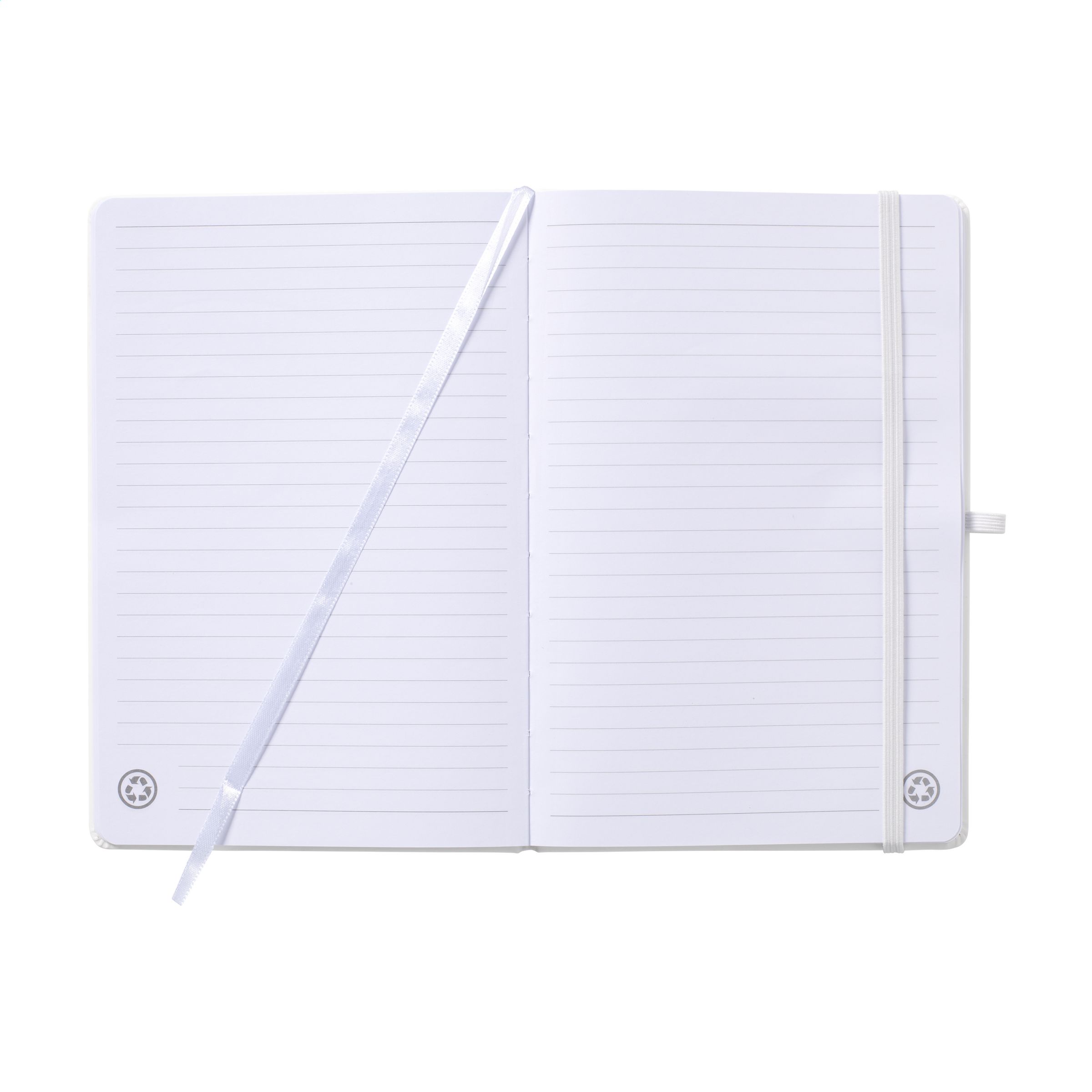 WoW! A5-Notizbuch mit Hardcover aus recyceltem PU und ca. 96 Blatt/192 Seiten weißem, liniertem, GRS-zertifiziertem Papier (70 g / m²). Mit gebundenem Rücken, Verschlussgummiband und Seidenleseband. GRS-zertifiziert. Recyceltes Material insgesamt: 93%.