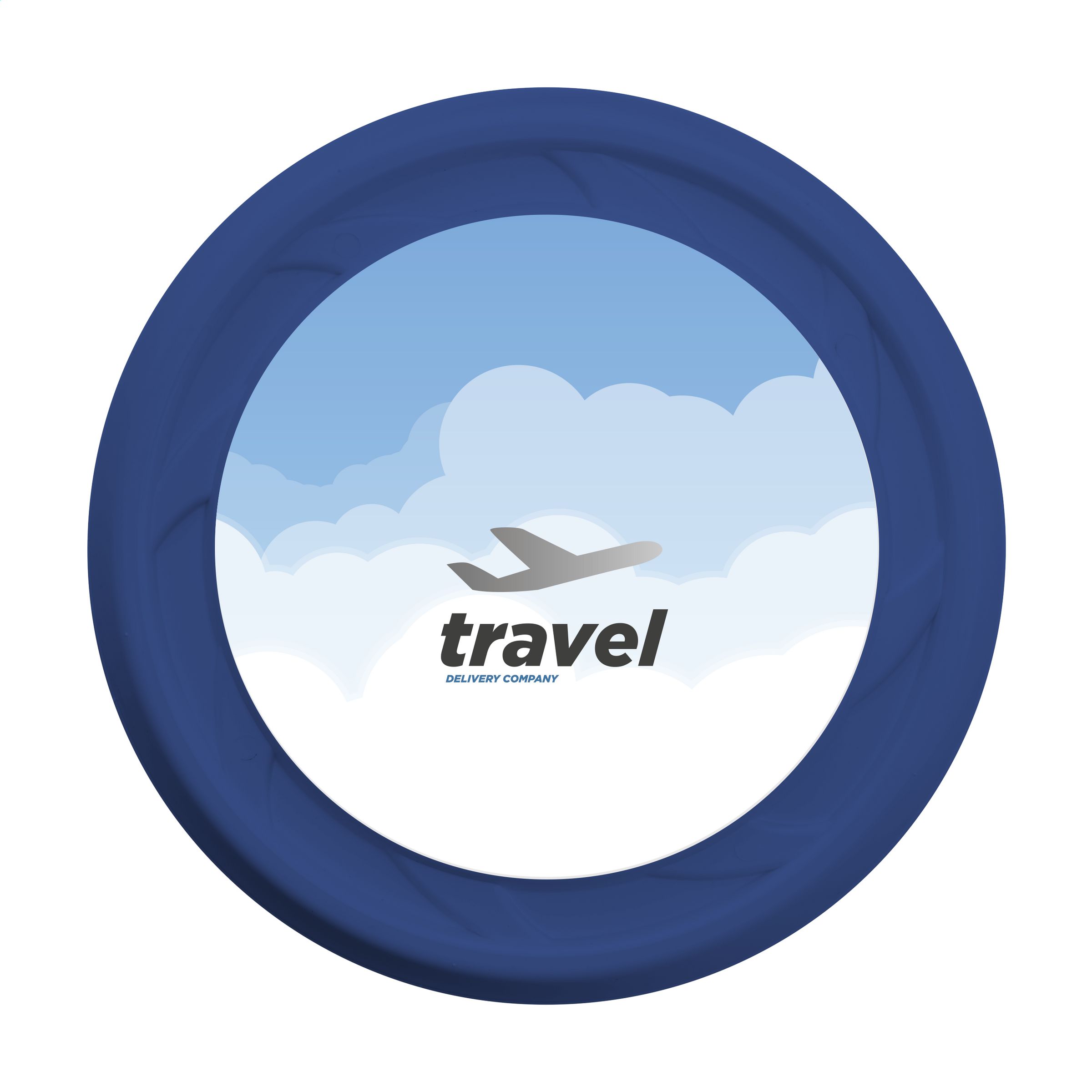 WoW! Wurfscheibe (Ø 23 cm) aus recyceltem Kunststoff. Inklusive Vollfarb-Aufkleber.