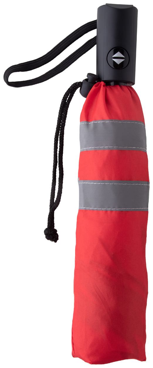 Vollautomatischer Windproof-Taschenschirm (öffnen / schließen) mit 8 Segmenten und reflektierenden Rand. Materialien: Metallstock, Alu-Rahmen, Firberglas-Speichen, Kunststoffgriff und Bespannung aus 190T Pongee. Inkl. farblich abgestimmen Etui mit Reflektorstreifen. Nur für Werbezwecke, das Produkt erfüllt nicht die Eigenschaften von persönlicher Schutzausrüstung.