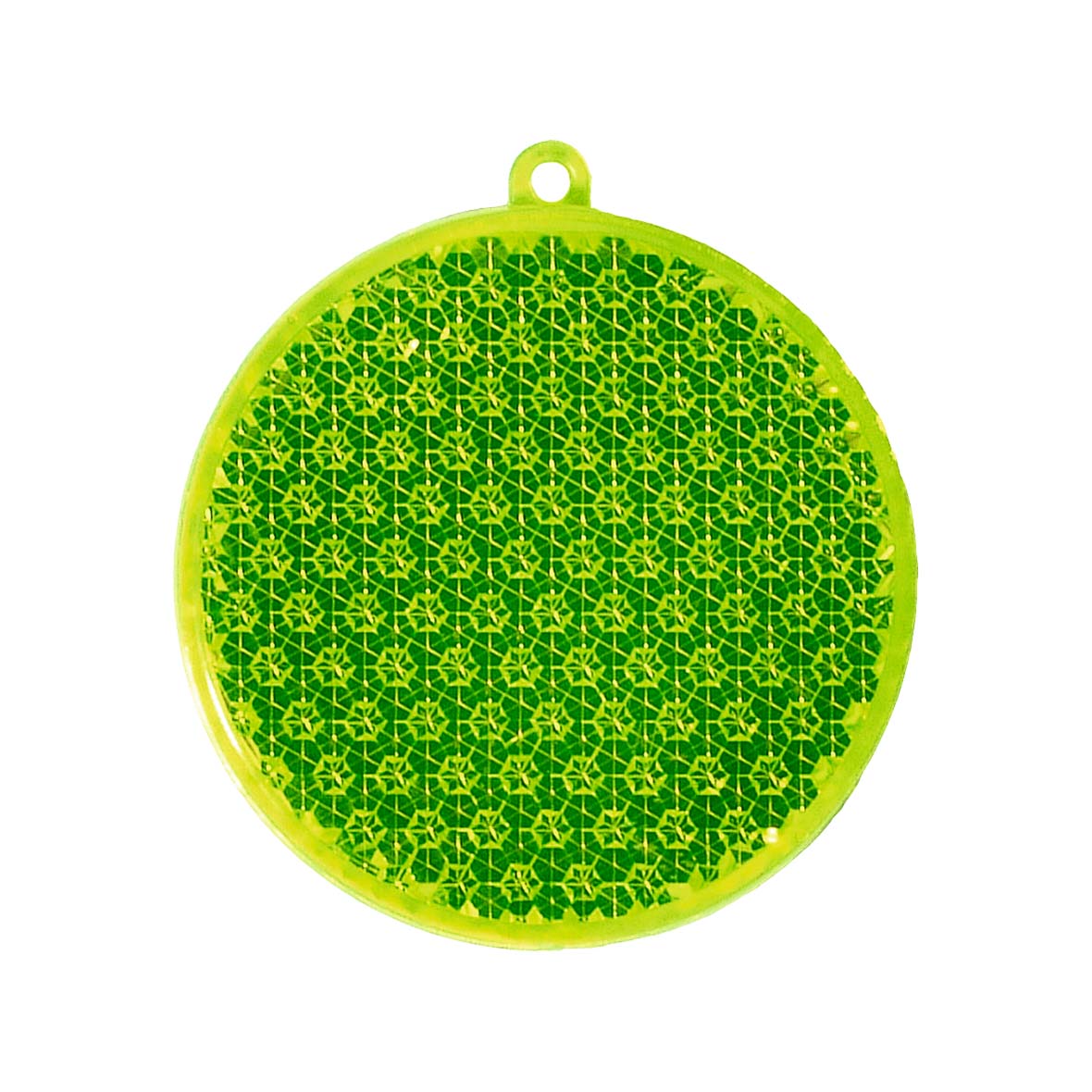 Eine runde Sache. Reflektor in Kreisform. Mit großer Werbefläche, Öse und Schnur. Bei diesem Artikel handelt es sich um einen reflektierenden Werbeanhänger.