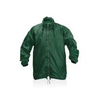 Regenjacke mit Stehkragen und einrollbarer Kapuze mit verstellbarem Kordelzug. Frontreißverschluss mit passendem Zipper. Zwei seitliche Pattentaschen. Elastische Ärmelbündchen. Elastisches Band in der Tasche zum Zusammenfalten und...