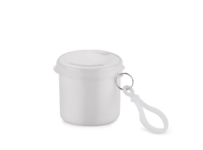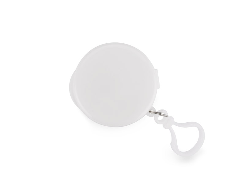 Der FLUXY-Regenponcho ist zur einfachen Aufbewahrung in einer Kunststoffbox verpackt. Dank seiner geringen Größe passt es in jeden Rucksack oder jede Handtasche. Kann mit einem Kunststoffgriff an einer Gürtelschlaufe befestigt werden.