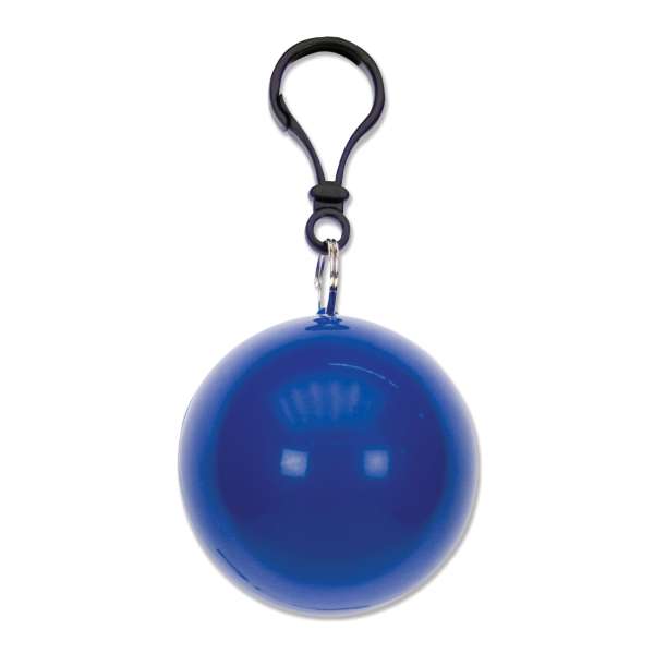 Ein Regenponcho verpackt in einer Kunststoffkugel. Sehr praktisch, wenn man unterwegs vom Regen überrascht wird. Den Schlüsselanhänger können Sie leicht an einem Fahrrad oder einer Tasche befestigen.