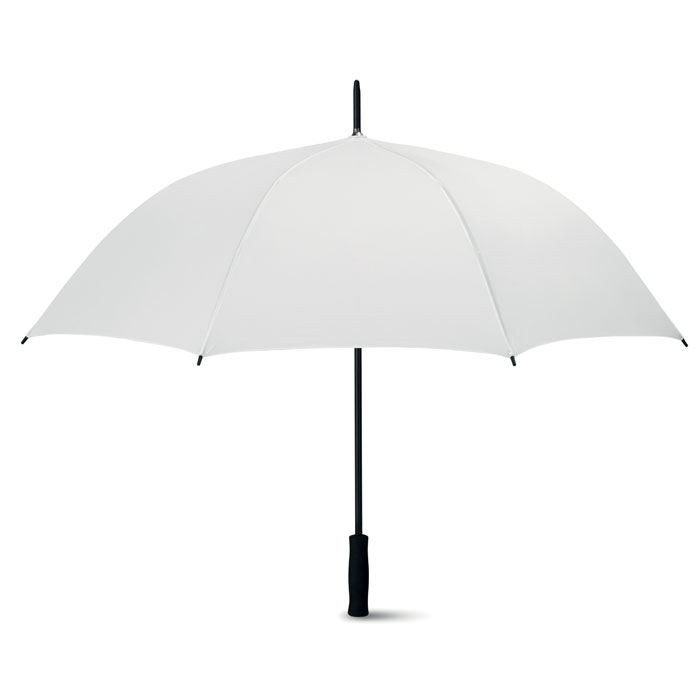 27'' Regenschirm aus 190T Pongee. Stock und Schienen aus schwarz überzogenem Metall, Spitzen aus schwarzem Kunststoff. Schwarzer EVA Griff. Automatische Öffnung, manuelle Schließung.