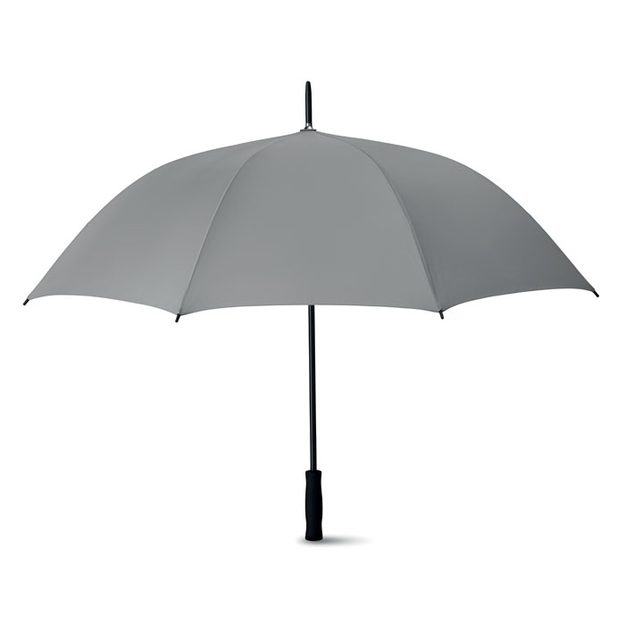 27'' Regenschirm aus 190T Pongee. Stock und Schienen aus schwarz überzogenem Metall, Spitzen aus schwarzem Kunststoff. Schwarzer EVA Griff. Automatische Öffnung, manuelle Schließung.