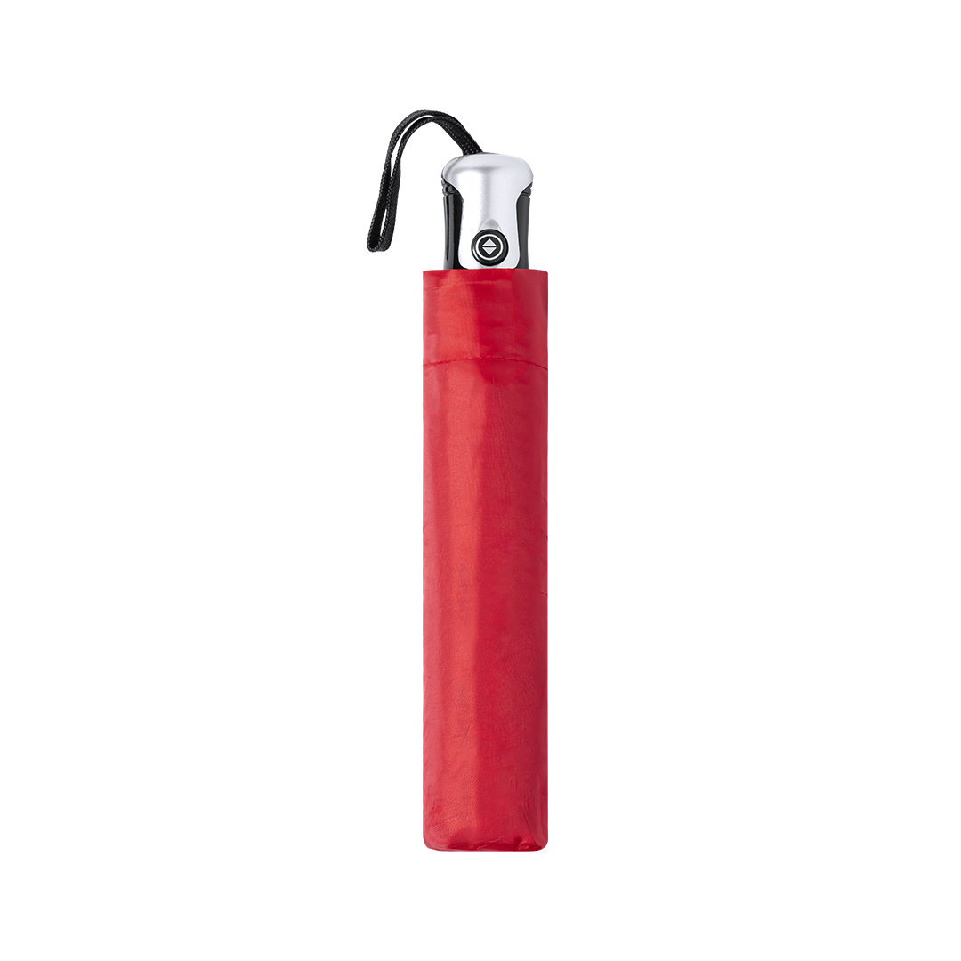 Faltbarer Schirm mit 8 Paneelen und 98cm Durchmesser. Gewebe aus widerstandsfähigem Polyester 190T, mit automatischem Öffnungs- / Schließmechanismus und Anti-Wind-System. Silbermetallic und Glasfaserrippen. Klettverschluss und ergonomischer Griff mit Tragegurt. Inklusive passendem Bezug.
