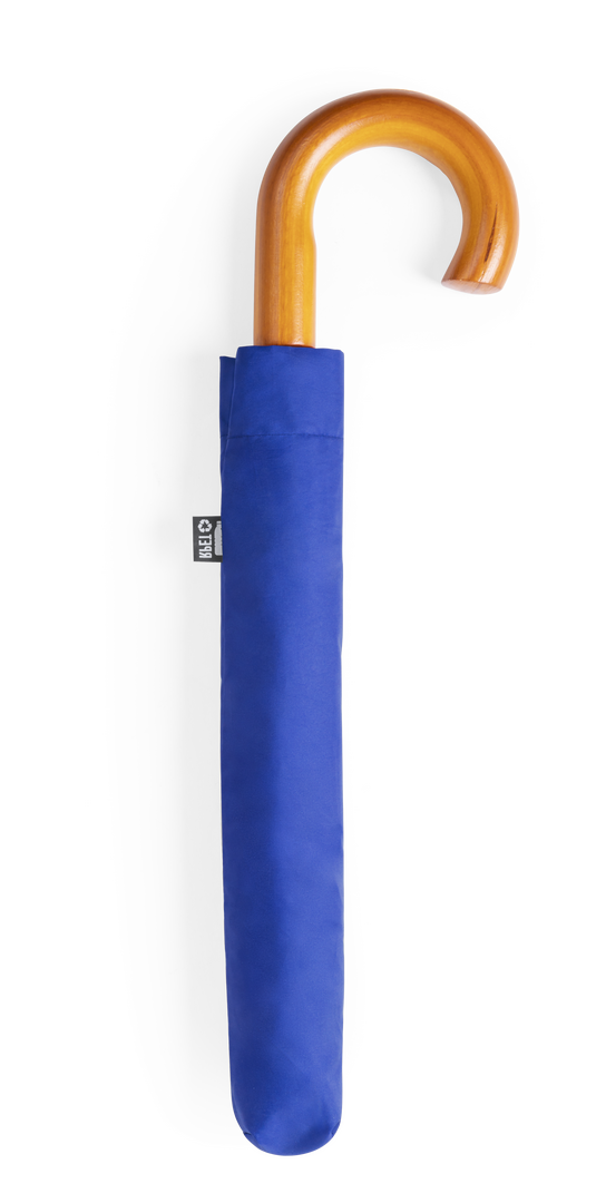 Linie "Natur" zusammenklappbarer Regenschirm, 100 cm Durchmesser. Aus 190T RPET Pongee-Material, hergestellt aus recyceltem Kunststoff, um die Wiederverwendung von Kunststoffabfällen zu fördern und die Nachhaltigkeit des Planeten zu unterstützen. Automatisch öffnend, windfest und Metallrippen. Gebogener Holzgriff und RPET-Emblem auf dem Etikett. Erhältlich in einer breiten Farbpalette, mit passendem RPET-Beutel.