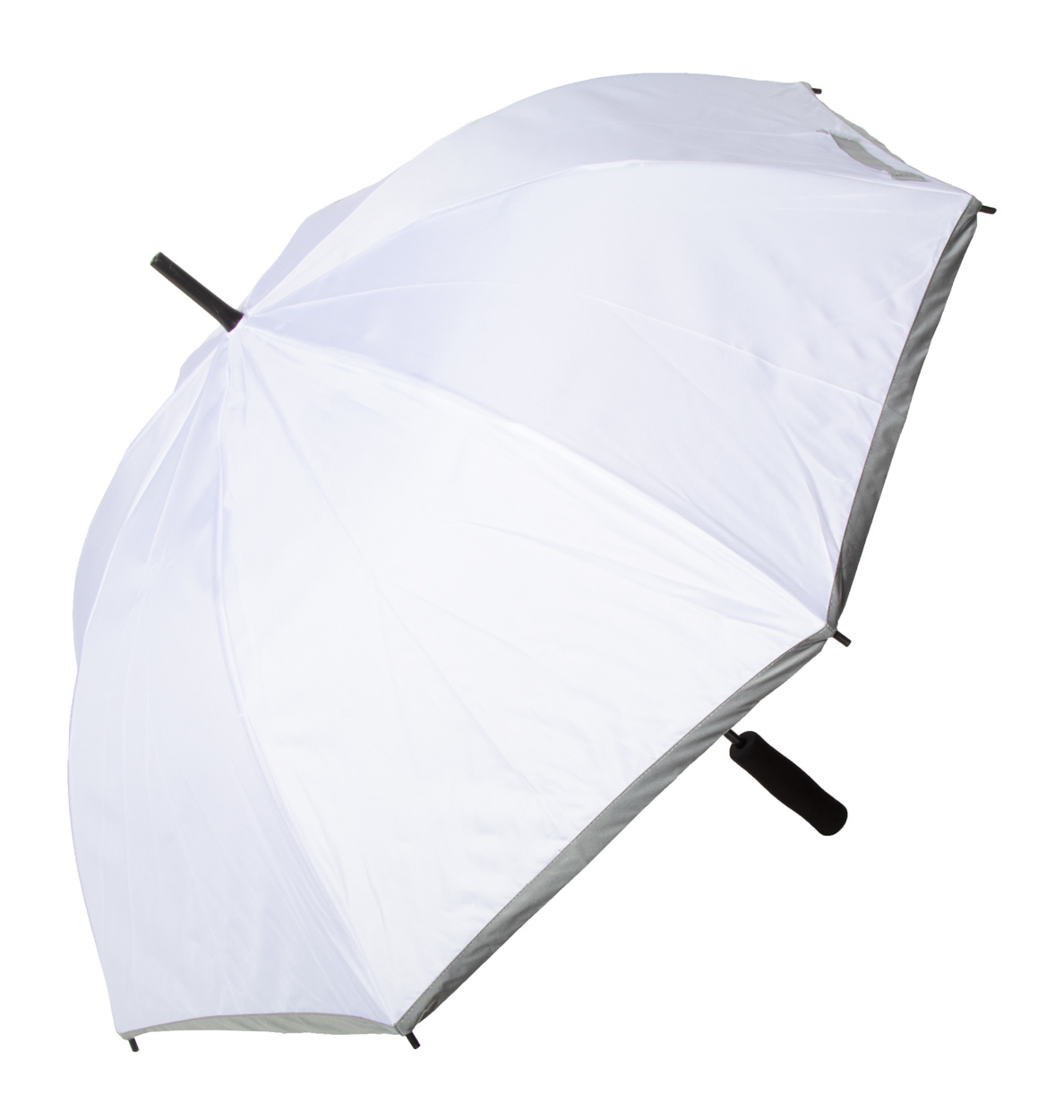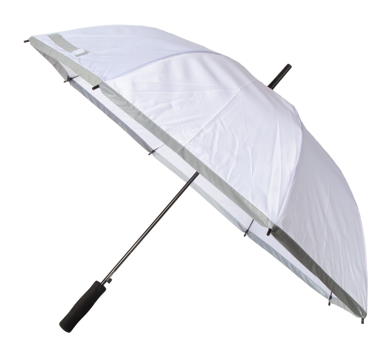 Individueller Automatikschirm mit 8 Segmenten und reflektierendem Finish, Metallstock, Fiberglasspeichen und EVA-Griff. Material: 190T RPET-Pongee. Der Preis ist inkl. RPET-Label und Sublimationsdruck auf allen Segmenten. Mindestmenge: 50 Stk. Nur für Werbezwecke, das Produkt erfüllt nicht die Eigenschaften von persönlicher Schutzausrüstung.