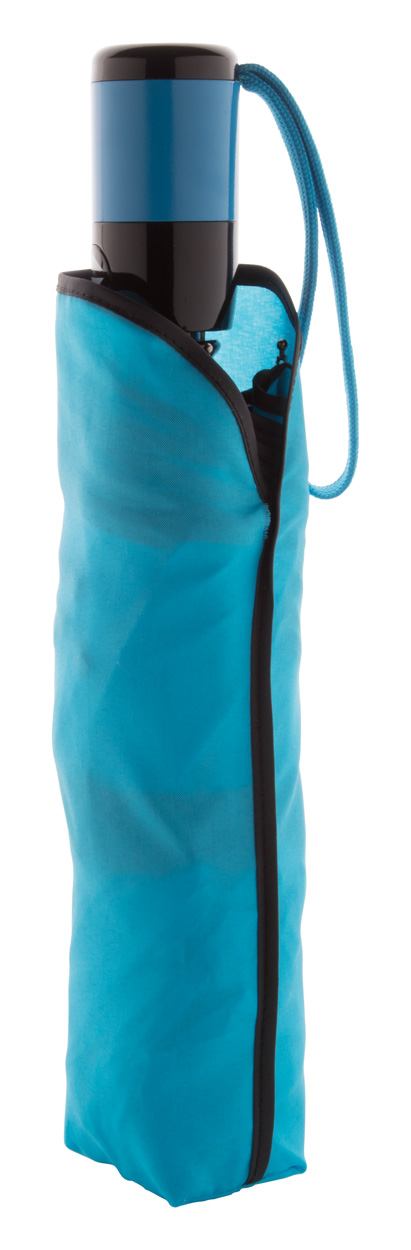 Vollautomatischer Windproof-Taschenschirm mit 8 Segmenten. Metallstock, Metall / Fiberglas-Speichen und farblich abgestimmtem Etui. Bespannung: 190T Polyester-Pongee.