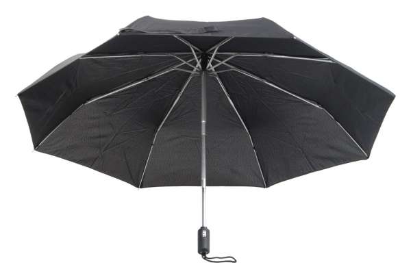 Vollautomatischer Taschenschirm mit 8 Segmenten und Etui (mit Markenaufdruck). Material: 190T Pongee. Marke: André Philippe.