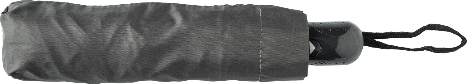 Faltbarer Automatik-Taschenschirm mit einer Bespannung aus Pongee (180T). Der Schaft und das Gestell sind aus Metall und der Handgriff ist aus Kunststoff.
