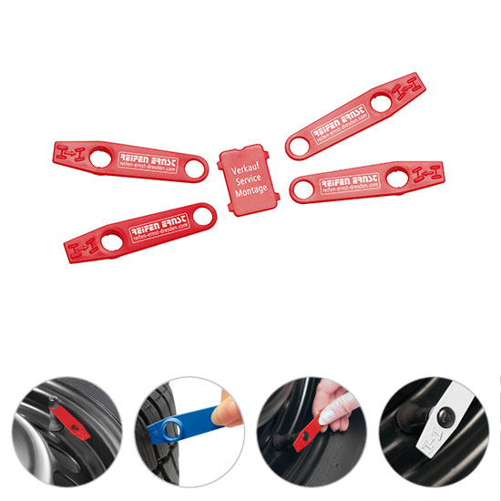 Reifenkennzeichnungs-Set mit Reifenprofiltiefenmessern und Ventilkappendrehern