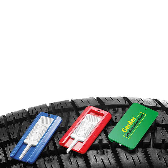 Reifenprofiltiefenmesser mit geprägter Skala. Farbkombinationen möglich.