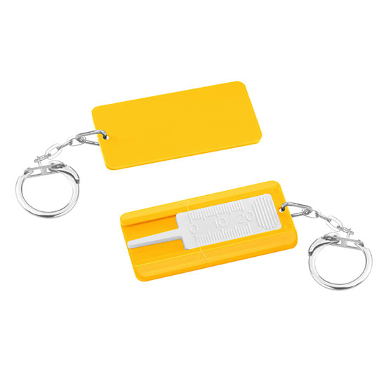 Reifenprofiltiefenmesser mit geprägter Skala und Gliederkette. Farbkombinationen möglich.