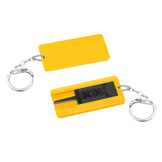 Reifenprofiltiefenmesser mit geprägter Skala und Gliederkette. Farbkombinationen möglich.