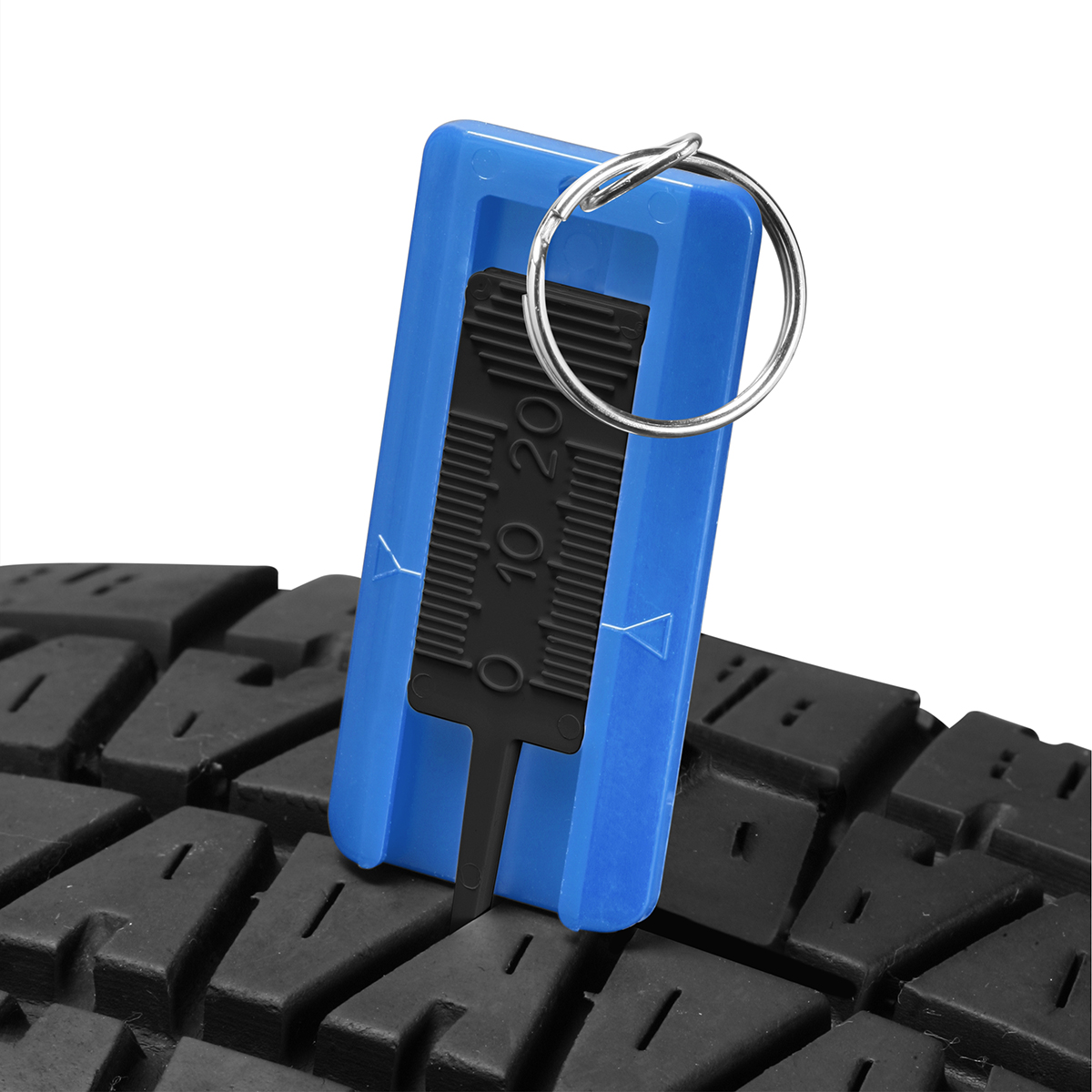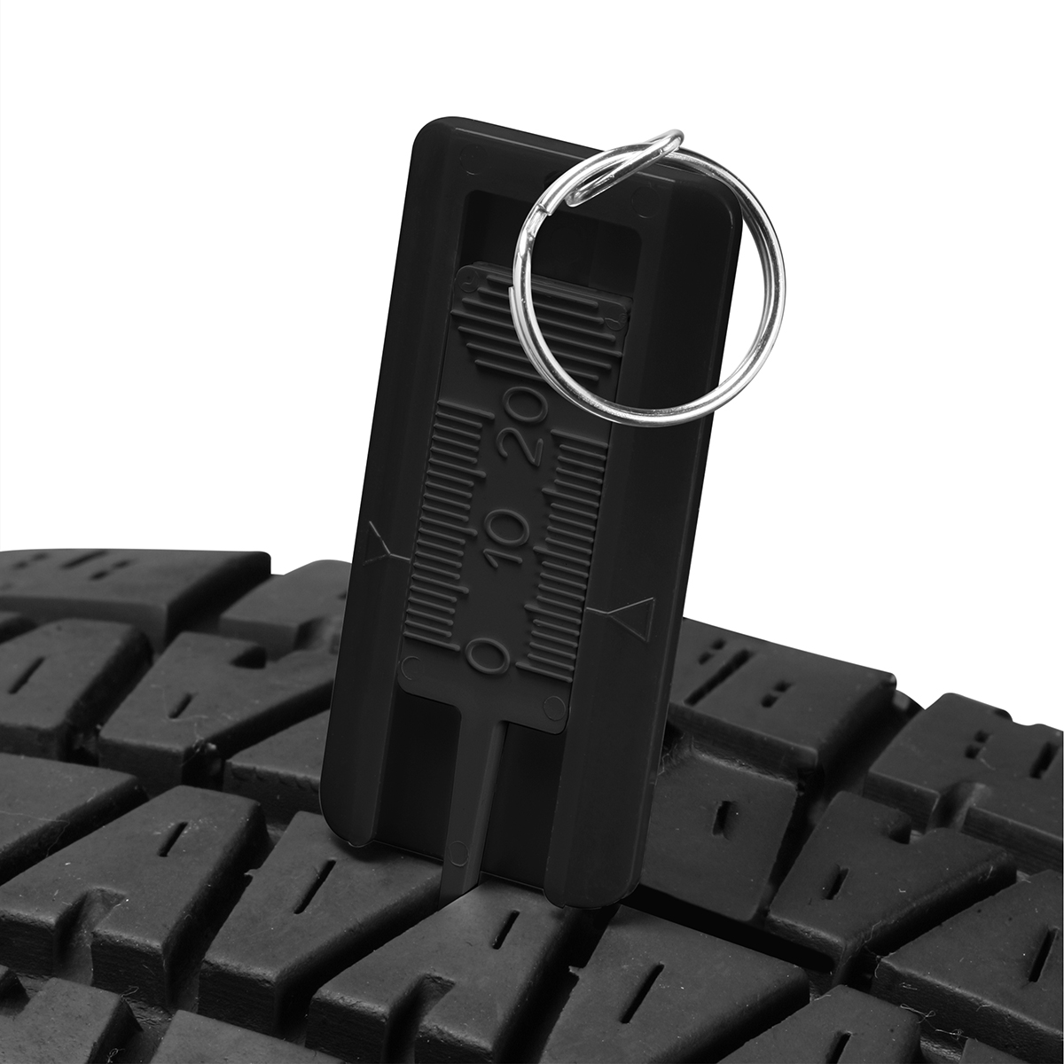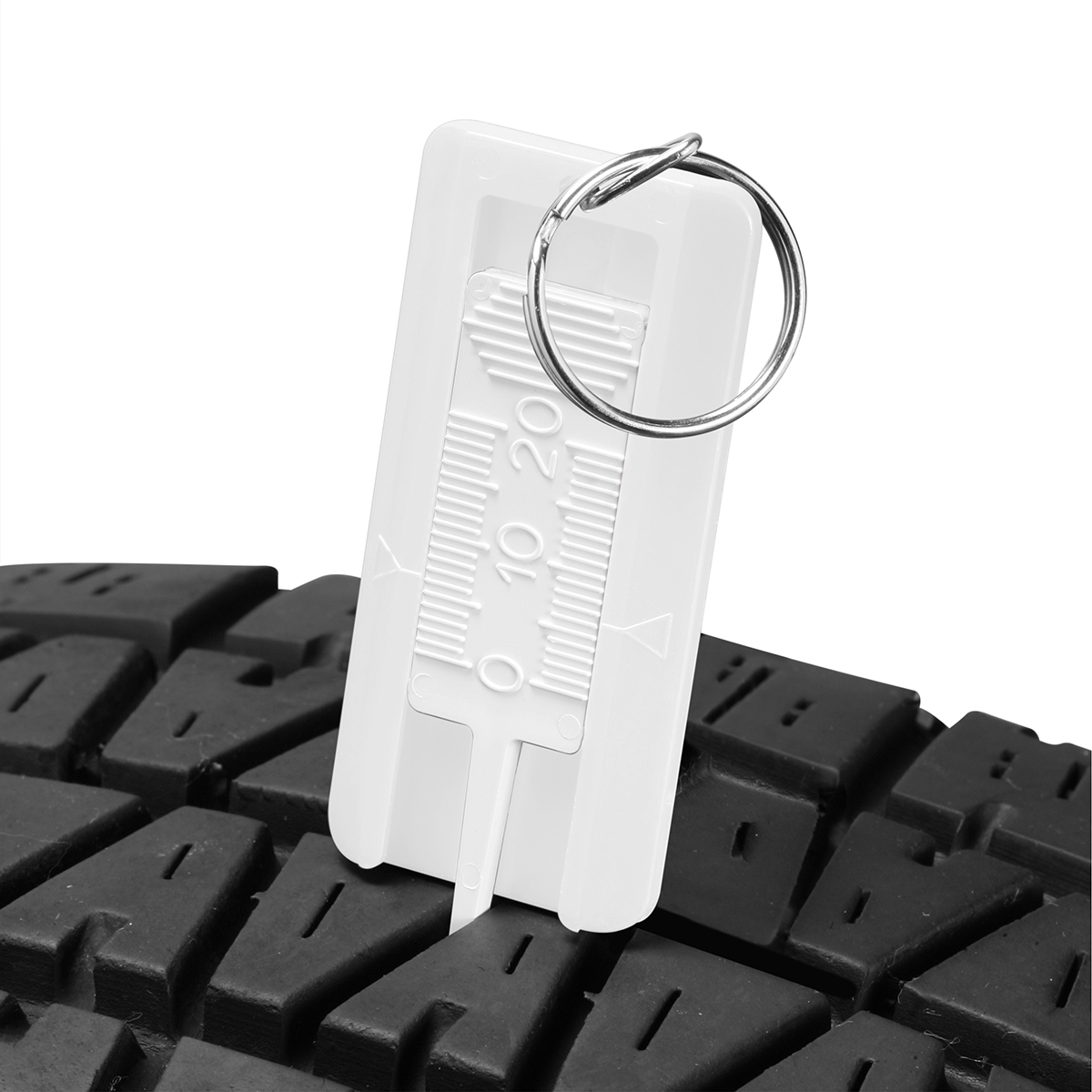 Reifenprofiltiefenmesser mit geprägter Skala, mit Schlüsselring