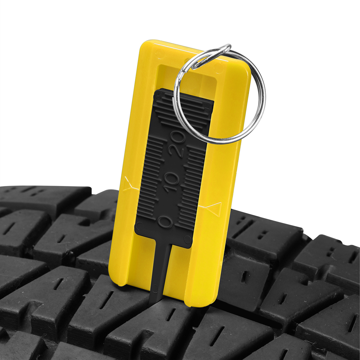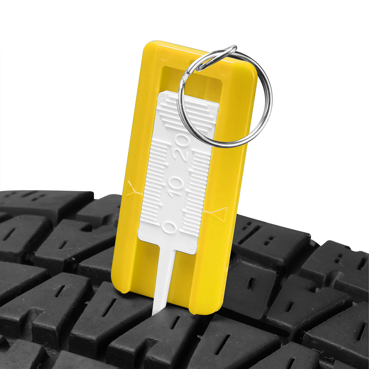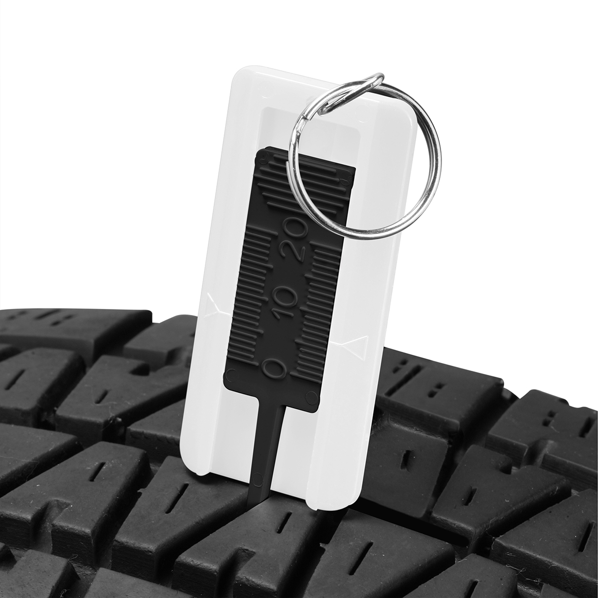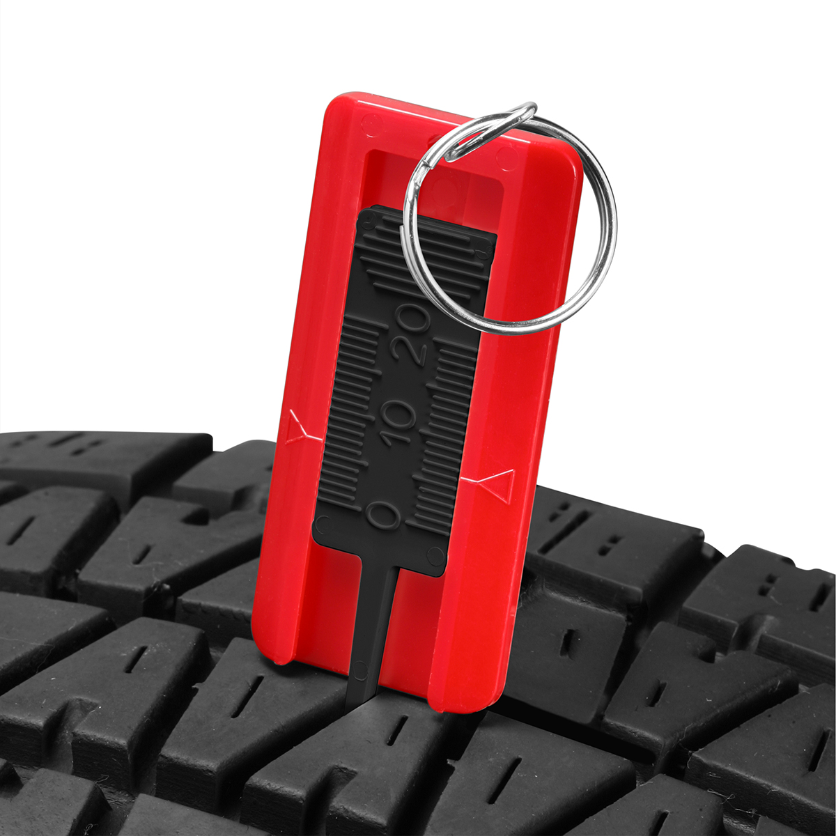 Reifenprofiltiefenmesser mit geprägter Skala, mit Schlüsselring