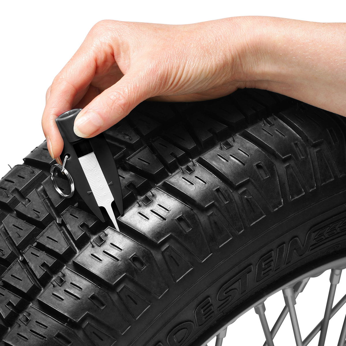 Reifenprofiltiefenmesser mit Ventilkappendreher mit Schlüsselring