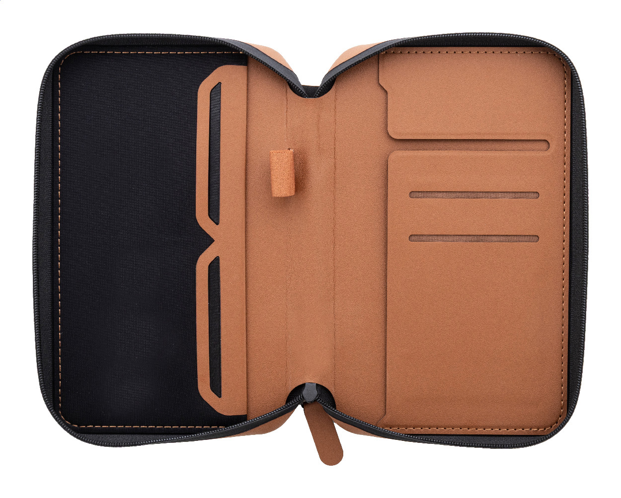 Luxuriöser Reiseorganizer und Passhülle aus recyceltem PU-Leder mit Reißverschluss. Mit mehreren Innentaschen für Dokumente, Karten und Reiseutensilien.
