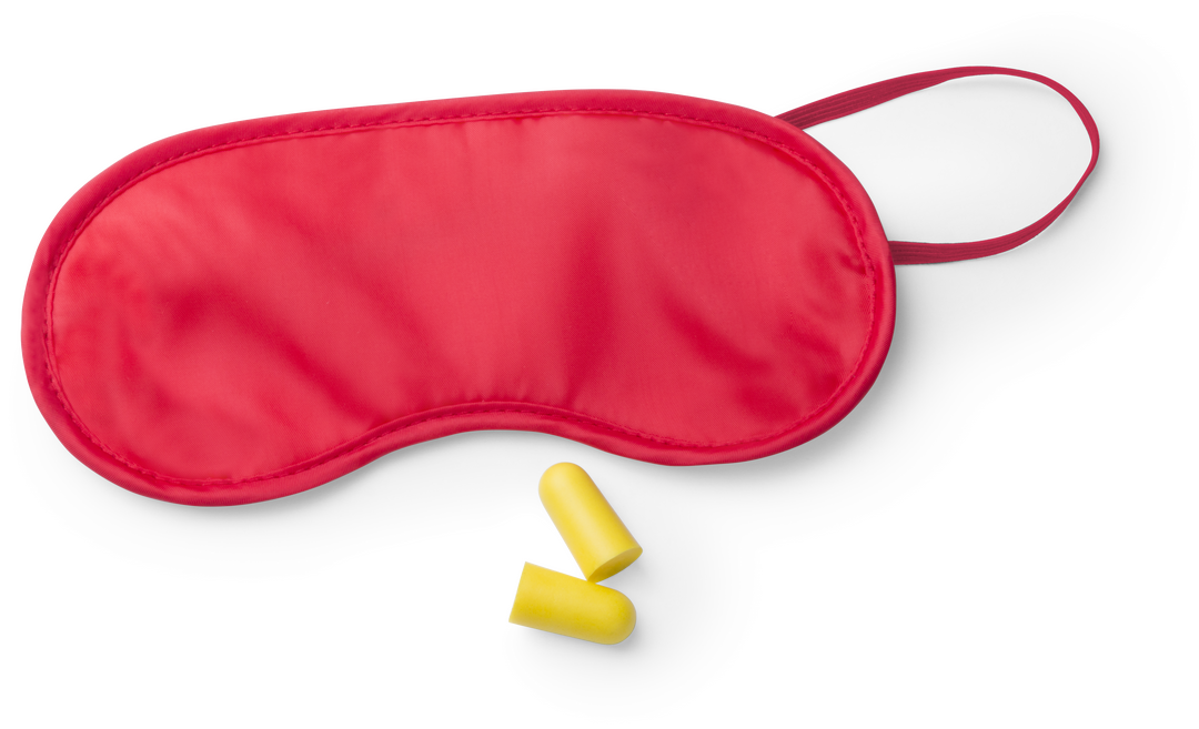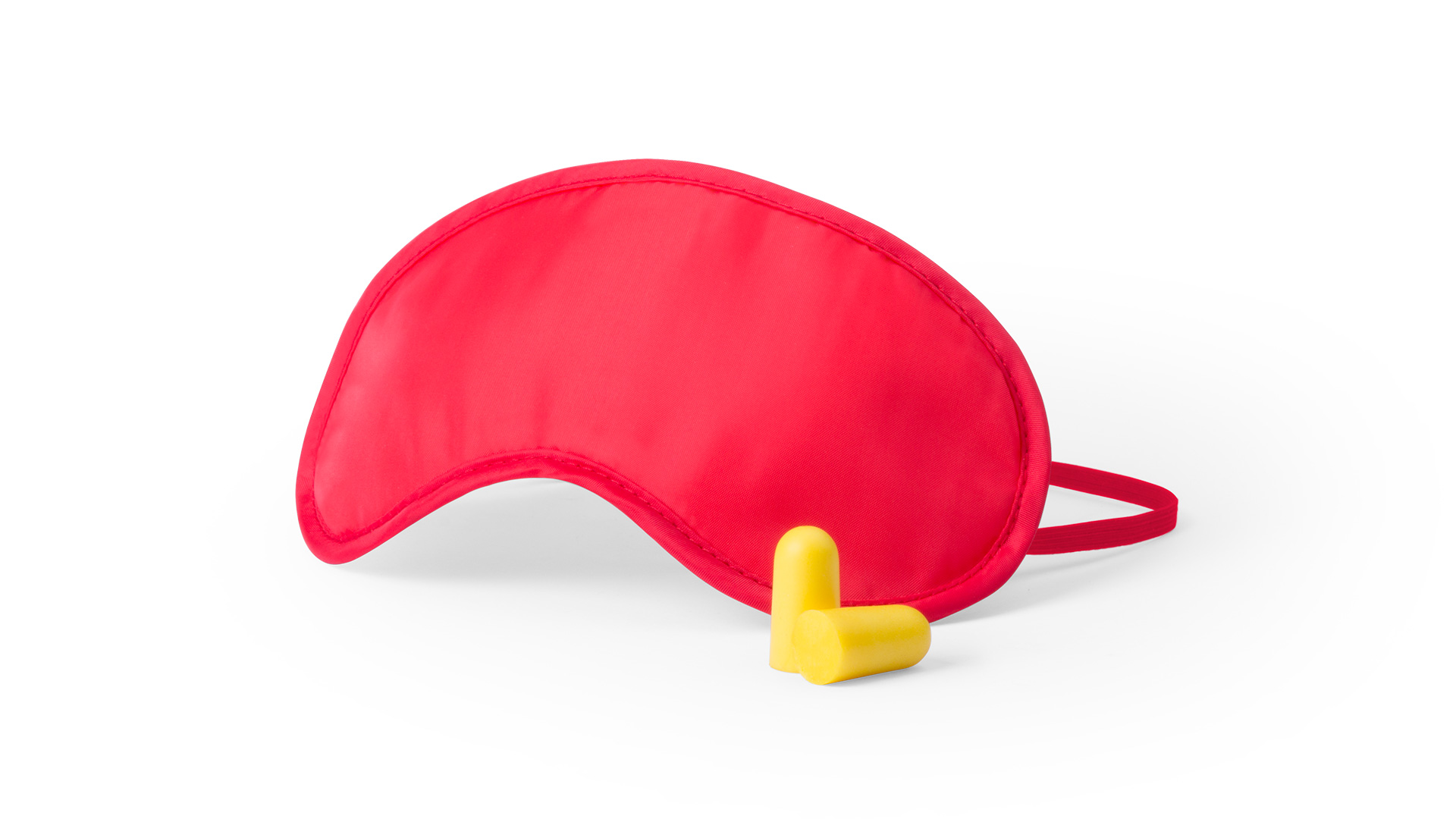 Reiseset aus Augenmaske und Ohrstöpseln. Maske aus angenehm weicher und komfortabler Mikrofaser in kräftigen Farben mit Gummiband in passender Farbe. Ohrstöpsel aus weichem EVA-Schaum. Präsentiert in einer individuellen Tasche.