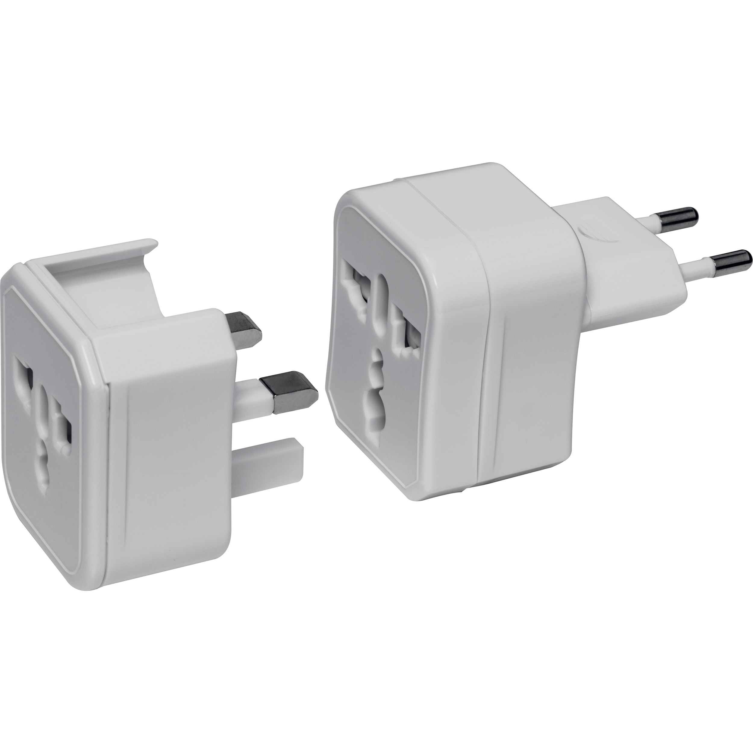 Reiseadapter in einem Kunststoffetui mit Adaptern für US, UK, AUS, Asien und EU. So können Sie auch unterwegs Ihre Geräte immer benutzen oder aufladen. Der Werbeaufdruck erfolgt auf das Etui.