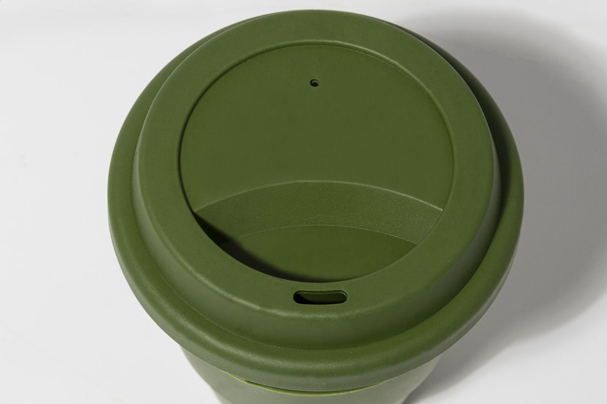 Einwandiger Reisebecher aus PP mit Trinkdeckel und Ring aus TPE. Füllmenge: 350 ml.