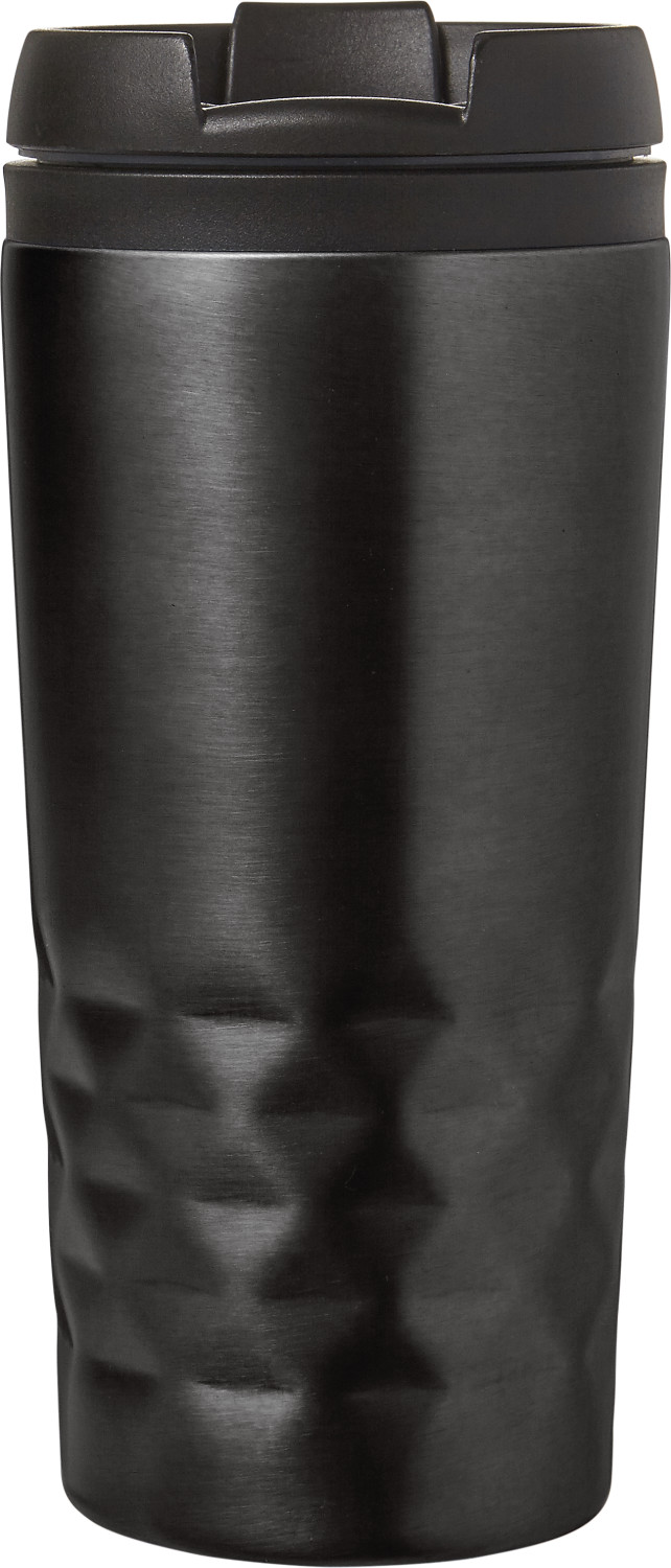 Thermobecher 'Brilliant' (300 ml) aus Edelstahl, doppelwandig, mit schwarzem Kunststoffdeckel (mit Klappverschluss) und Kunststoffinnenwand.