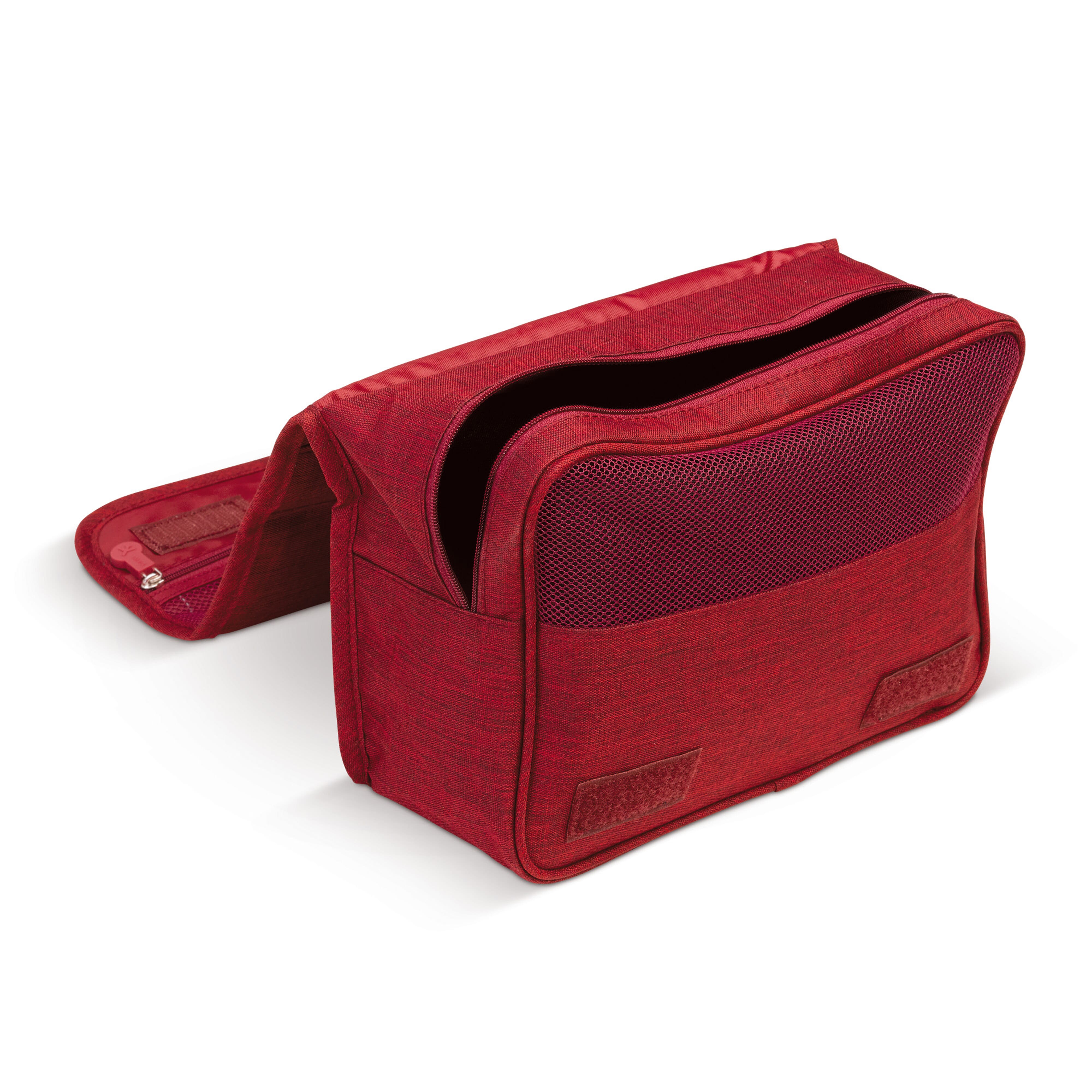 Praktischer Kulturbeutel mit verschiedenen Fächern. Der Haken ermöglicht es, ihn aufzuhängen.