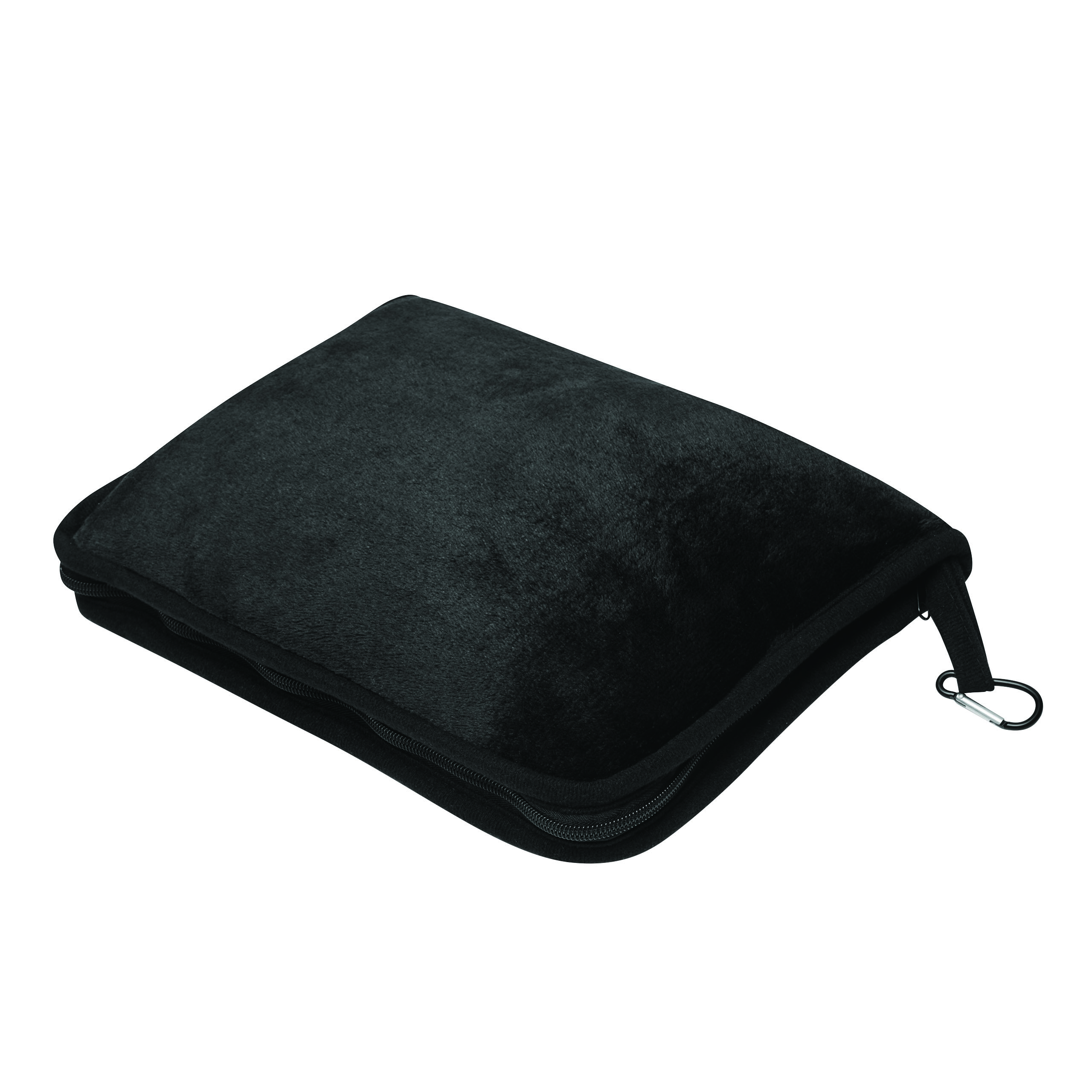 Reisedecke PURENAP: aus 100% rPET, weiches Wohlfühlerlebnis durch Plüschfleece, waschbar, in Tasche mit Reißverschluss zum Verschließen, Schlaufe mit kleinem Karabinerhaken (der Karabiner ist NICHT als Sicherung beim Klettern geeignet) und Gurt für Reporterfunktion, Decke lässt sich zusammengefaltet in der Tasche optimal als Kissen verwenden