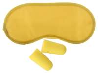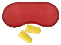Reiseset mit Schlafmaske (Material: Mikrofaser) und Ohrstöpsel (Material: EVA).