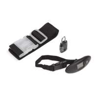 Hochwertiges Reisegeschenkset bestehend aus Kofferwaage, Koffergurt und Kofferanhänger. Die Kofferwaage wiegt bis zu 40 kg/88lbs.
