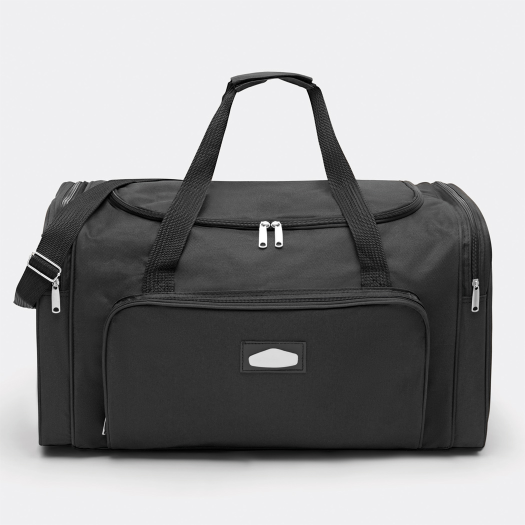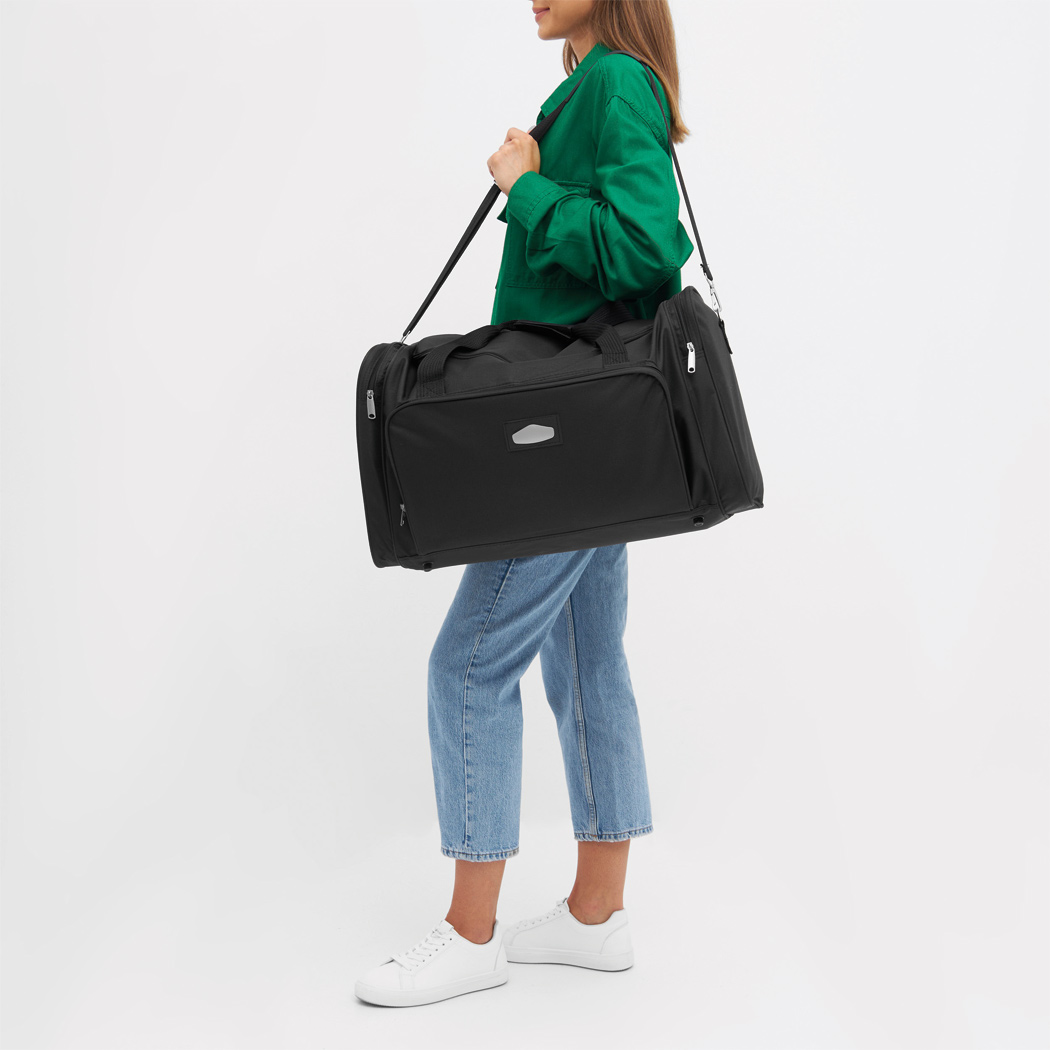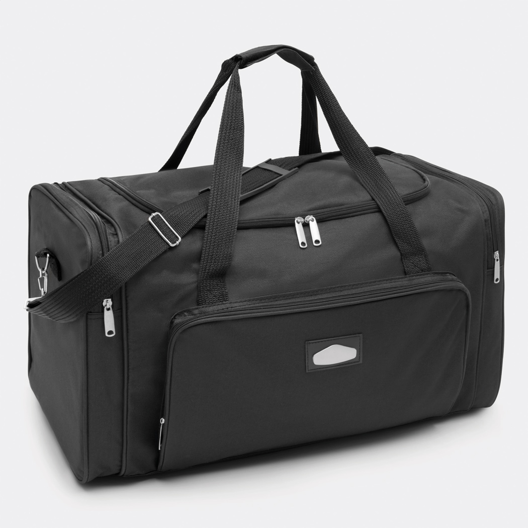 Reisetasche LASER PLUS TRAV: mit Reißverschluss-Hauptfach, Reißverschluss-Vortasche mit auswechselbarem Metalllogo, 2 Reißverschluss-Seitentaschen, inkl. verstell- und abnehmbarem Gurt mit Schulterpolster
