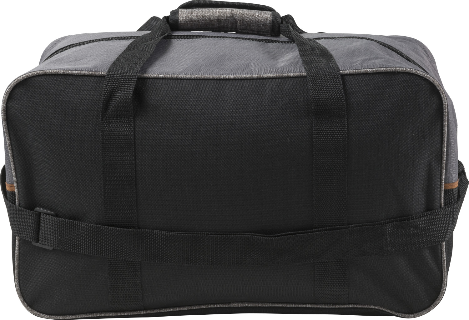 Reisetasche aus Polyester (600D) und PU, mit Frontfach, RV-Hauptfach, Tragegriffen mit Klettverschluss, verstellbarem Schultergurt und Befestigungsöse.