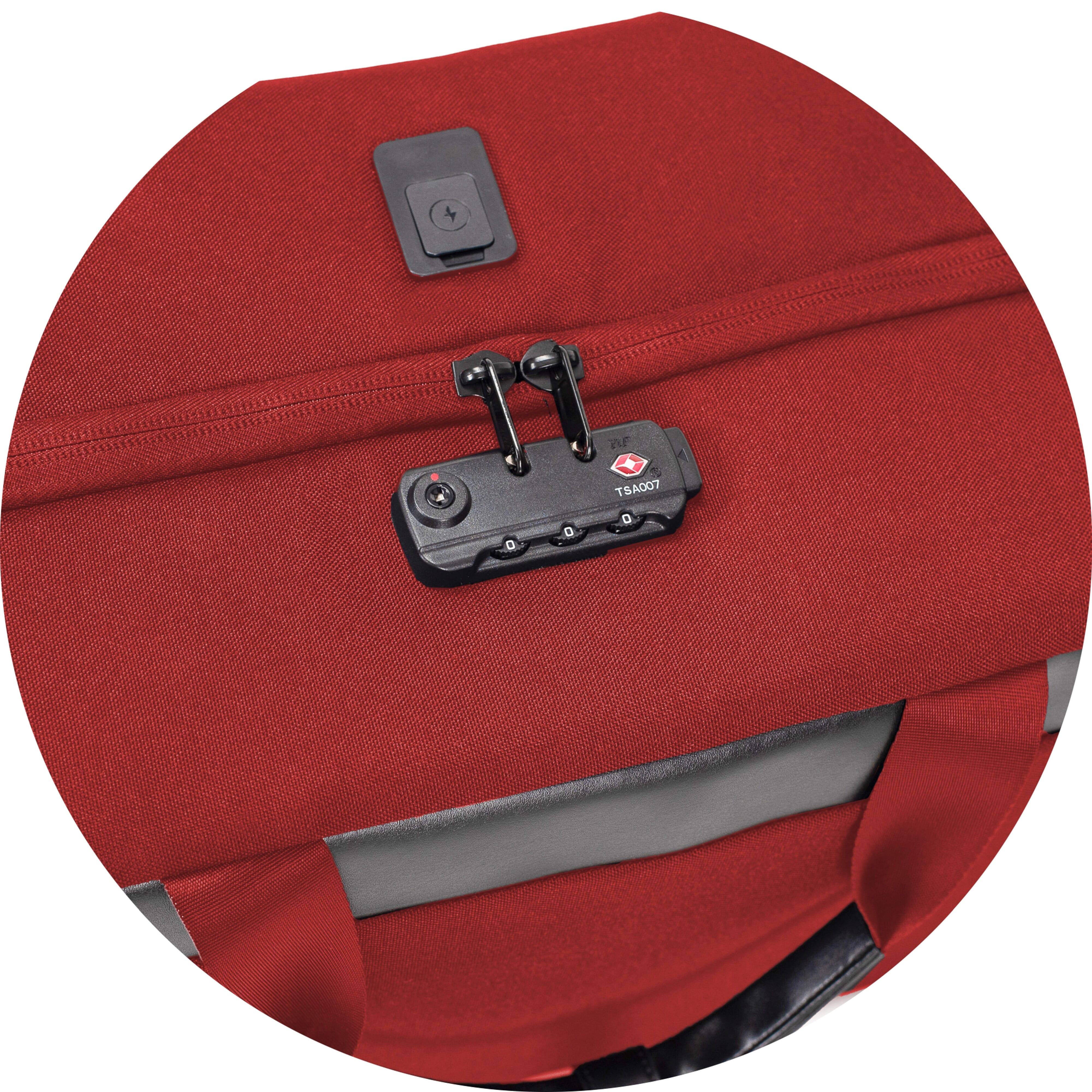 Geräumige und intelligente Reisetasche aus R-PET. Die Tasche eignet sich besonders als Handgepäck. Das kompakte Design passt auch in die Richtlinien von Billigfluggesellschaften. Jede Seite der Tasche kann geschlossen werden, um Kleidung sicher aufzubewahren. Eine Seite hat eine Netztasche und kann durch leichtes Öffnen des Hauptreißverschlusses benutzt werden, sodass Sie Ihre Reisedokumente immer in Reichweite haben.