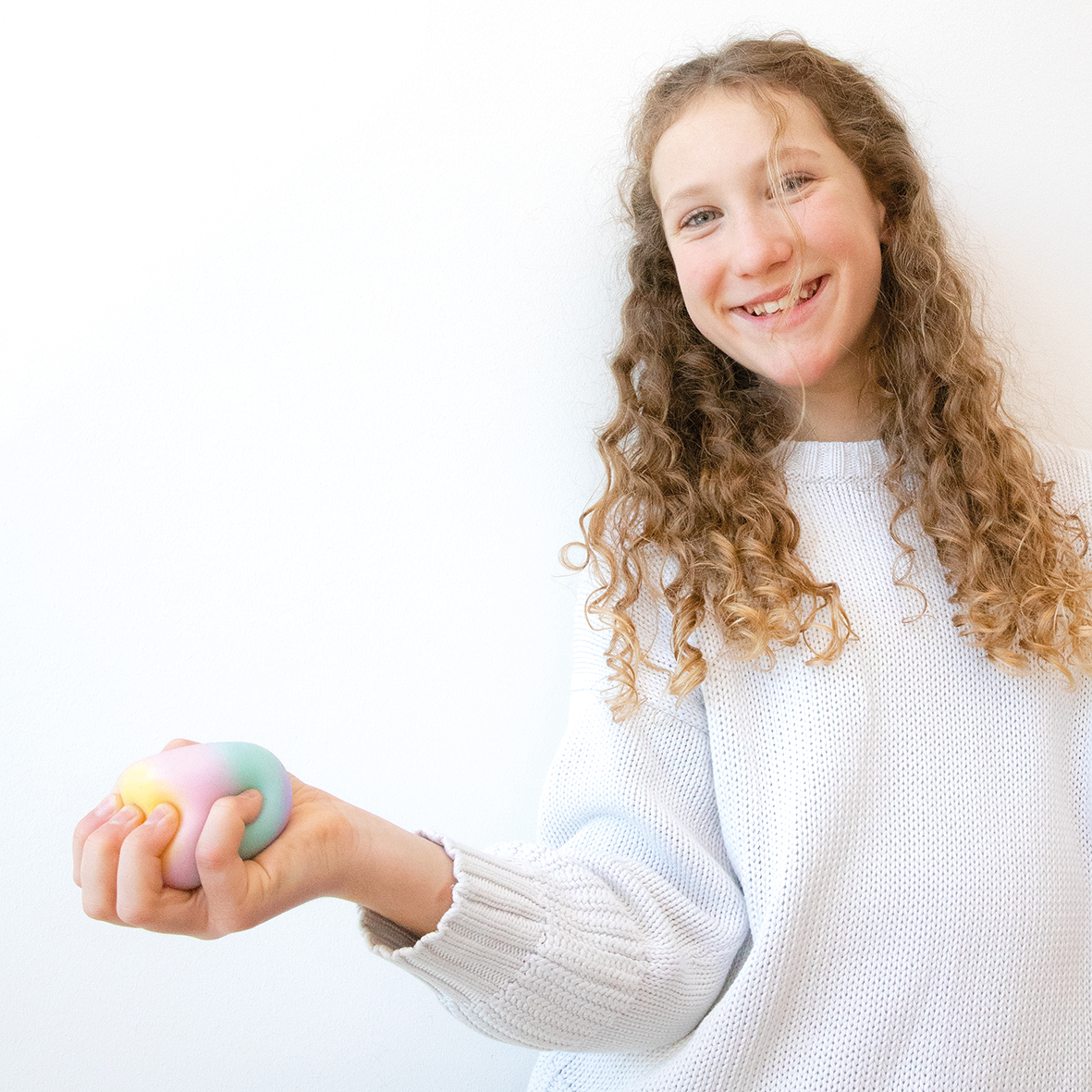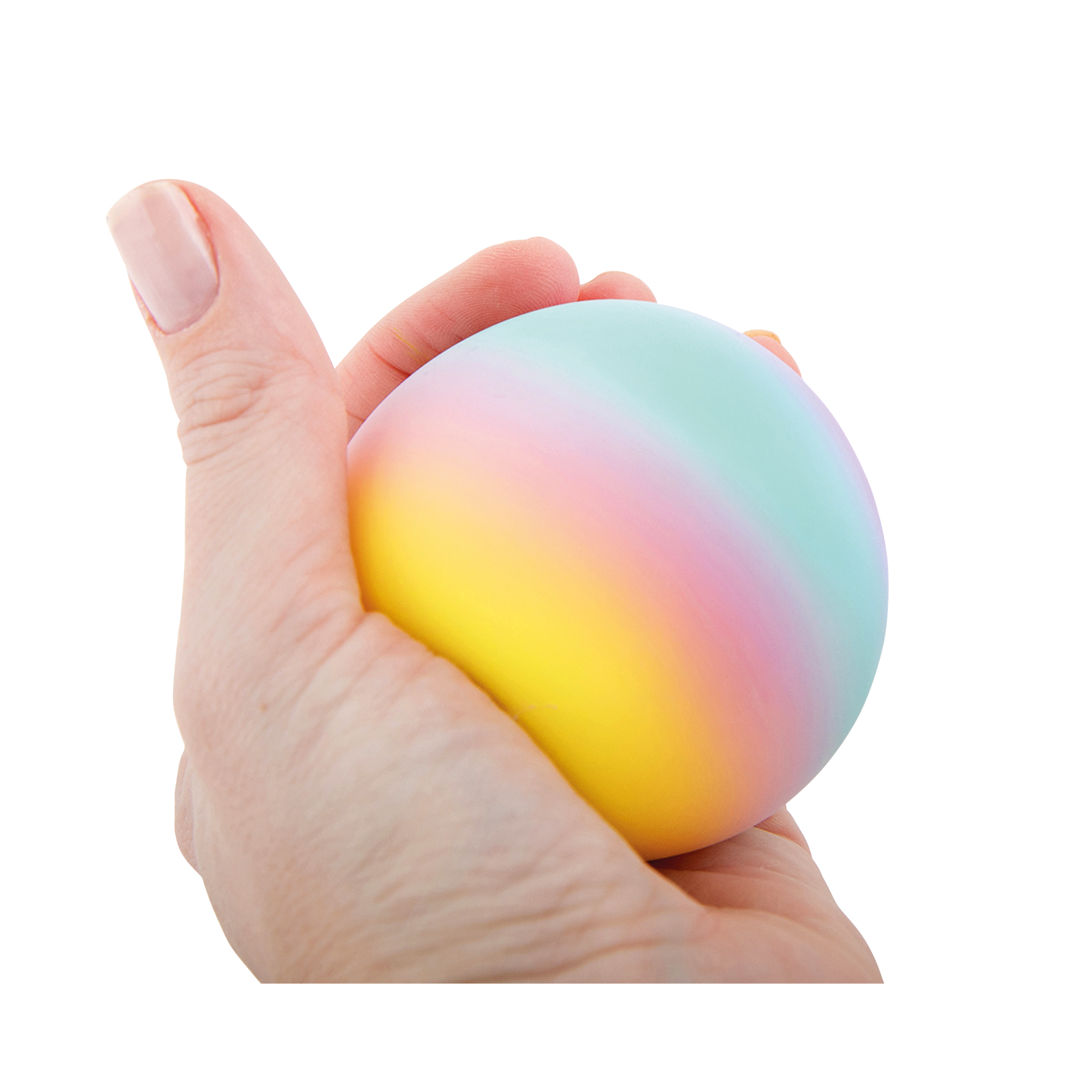 Squeeze it and feel good! Dieser superweiche Regenbogen-Knautschball sorgt einfach sofort für gute Laune! Drücken, lächeln und an etwas Schönes denken! So hat Stress keine Chance! Füllung: EVA-Pulver