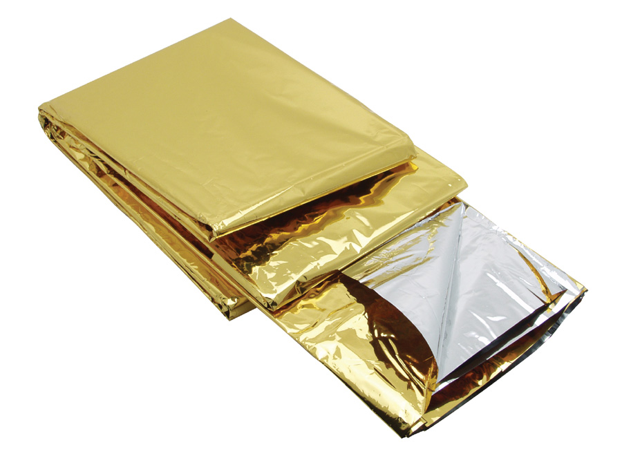 Polyethylen (PET) und Aluminium. Größe: 200 x 120 cm. Dicke: 12 Mikrometer. Hält 90 % der Wärmestrahlung zurück. Eine silberne Oberfläche / eine goldene Oberfläche. Die silberne Oberfläche nach außen reflektiert Wärmestrahlen und isoliert vor Hitze (effektive Klimatisierung eines Zeltes, eines Wohnwagens oder eines Autos). Die goldene Oberfläche nach außen isoliert vor Feuchtigkeit, Kälte und Regen (erhält die Körpertemperatur in Notfallsituationen). Die Vorteile in Kürze: - Zwei unterschiedliche Seiten (goldene oder silberne) für verschiedene Anforderungen. - Überdurchschnittliche Dicke im Vergleich zum Durchschnitt.