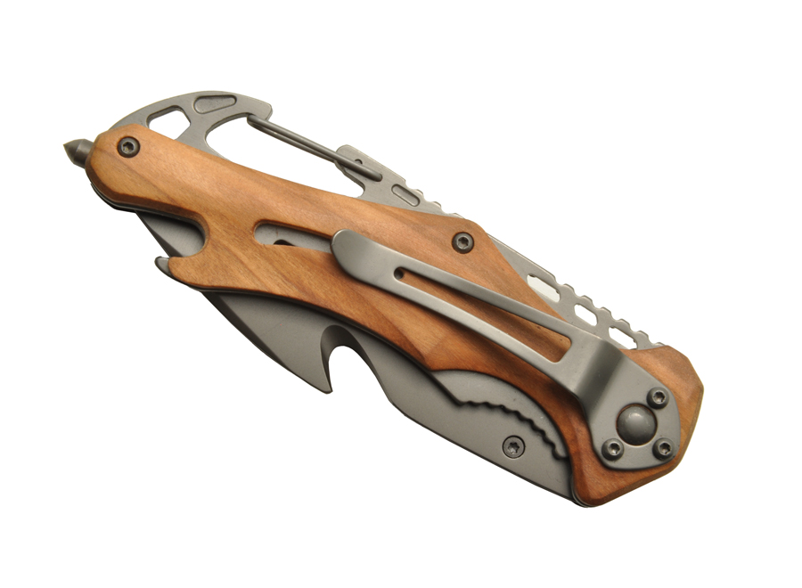 Klappbares Messer mit Klinge aus rostfreiem 420er Edelstahl und Titanbeschichtung, bestehend aus einem feinen Teil der Klinge (für präzise Schnitte) und einem teilweise gezahnten Teil (für schwierigere Schnitte). Montage mit Torx-Schrauben. Griff aus Olivenholz. Einhändiges Öffnen / Schließen mit einem Liner-Lock-Sicherheitsmechanismus. Funktion zum Schneiden von Gurten / Seilen auf Oberseite der Klinge und einem Wolframkarbid-Glasbrecher am Griffende. Wird in einem melierten grauen Etui aus RPET geliefert. Die Vorteile in Kürze: - Klinge aus 420er Edelstahl, die eine maximale Beständigkeit gegen Oxidation gewährleistet. - Eine teilweise gezahnte Klinge, die sich an alle Schneidanforderungen anpasst, mit einer eleganten Titanbeschichtung für verbesserte Haltbarkeit. - Torx-Schrauben-Montage, um Reibung beim Öffnen zu reduzieren und die langfristige Funktionsfähigkeit zu erhalten. - Ein raffiniertes Sicherheitsverriegelungssystem namens Liner Lock, das zu den einfachsten zu bedienenden gehört. - Ein Gurtschneider mit scharfer Klinge und integriertem Wolframkarbid- Glasbrecher für Notfallsituationen.