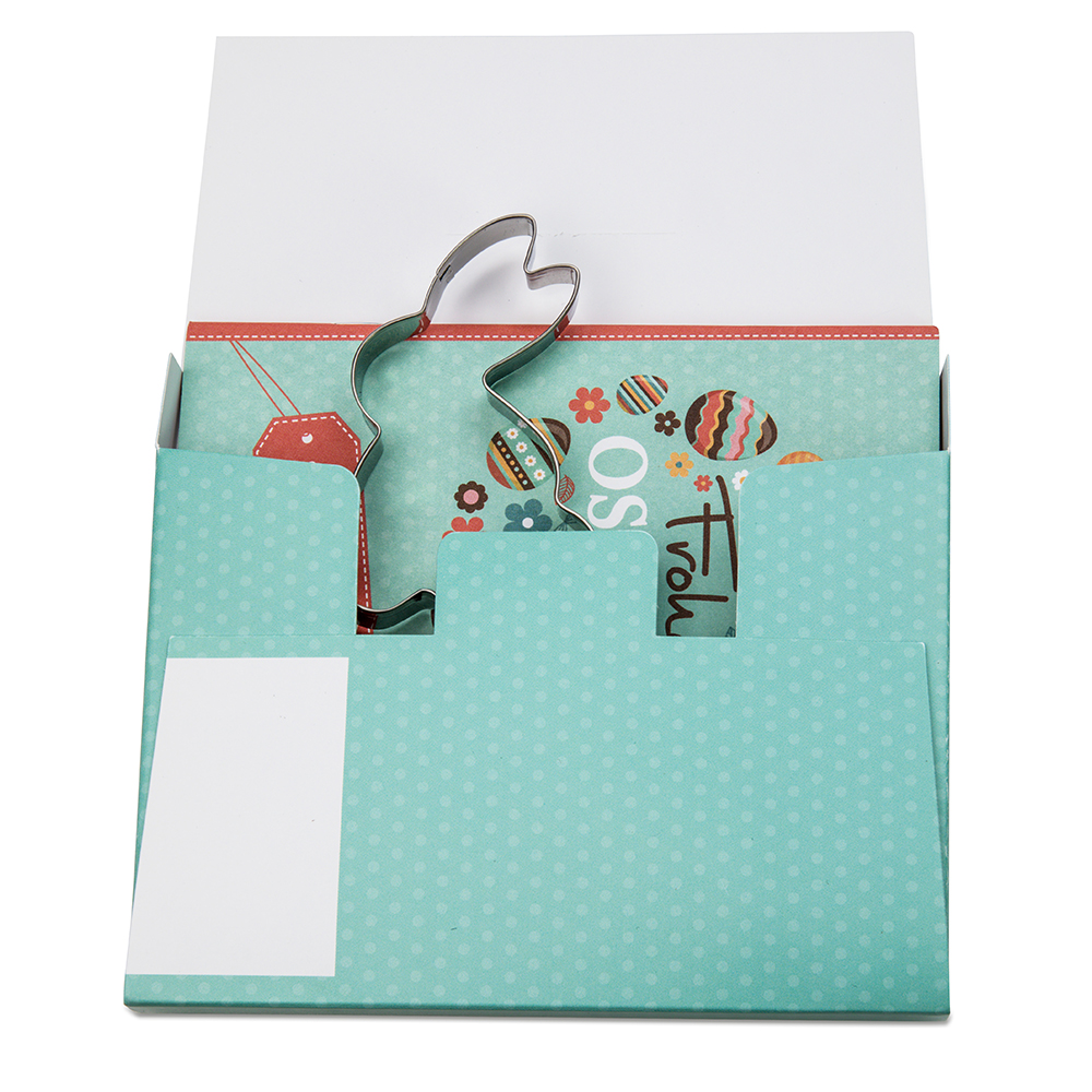 Unser Themen-Heft Ostern vereint Kreativität und Genuss in einem liebevoll gestalteten Geschenkset. Die 20-seitige Broschüre enthält abwechslungsreiche Back- und Kochrezepte für die Feiertage. Ergänzt wird das Set durch ein Backförmchen aus Edelstahl im Hasendesign oder mit 5 Farbtabletten – perfekt für kleine Osterleckereien. Verpackt ist das Set in einer thematisch gestalteten Mappe, die das Thema Ostern rundum harmonisch abrundet. Die Varianten: • Standardausführung: Ab Lager lieferbar, optional mit zusätzlichem Logoeindruck. • Individuelle Gestaltung: Ab 500 Stück mit personalisierten Außenseiten für ein einzigartiges Design.