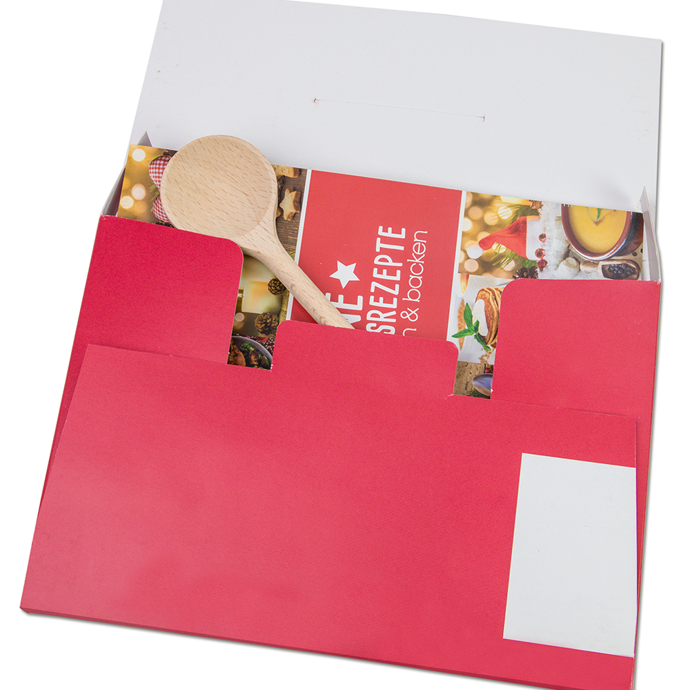 Die Weihnachtszeit ist die schönste Zeit des Jahres – und mit unserem Weihnachtsrezepte-Buch wird sie noch köstlicher! Auf 24 liebevoll gestalteten Seiten finden Sie eine vielseitige Auswahl an Rezepten für festliche Getränke, aromatische Suppen, raffinierte Salate, köstliche Festtagsgerichte und himmlische Desserts. Zum Teil mit Serviervorschlägen versehen, laden die Rezepte zum Nachkochen und Genießen ein – perfekt für besinnliche Momente mit Familie und Freunden. Zwei Varianten stehen zur Auswahl: • Rezeptbuch einzeln. • Set: Ergänzt wird das Rezeptbuch durch einen Holzkochlöffel und einer ansprechend gestalteten Mappe. Veredelungsmöglichkeiten: • Standardausführung: Ab Lager lieferbar, optional mit zusätzlichem Logoeindruck. • Individuelle Gestaltung: Ab 500 Stück mit personalisierten Außenseiten für ein einzigartiges Design.