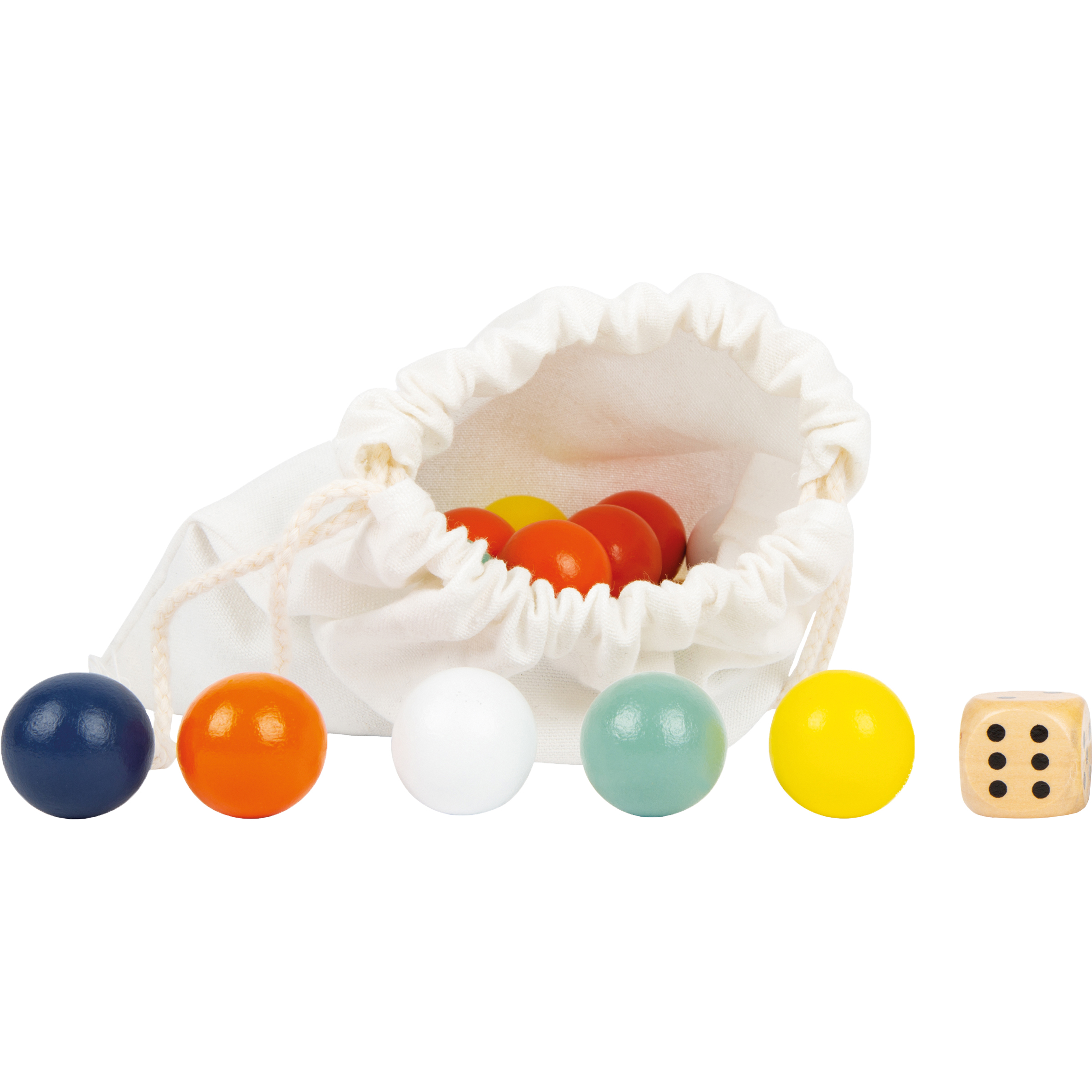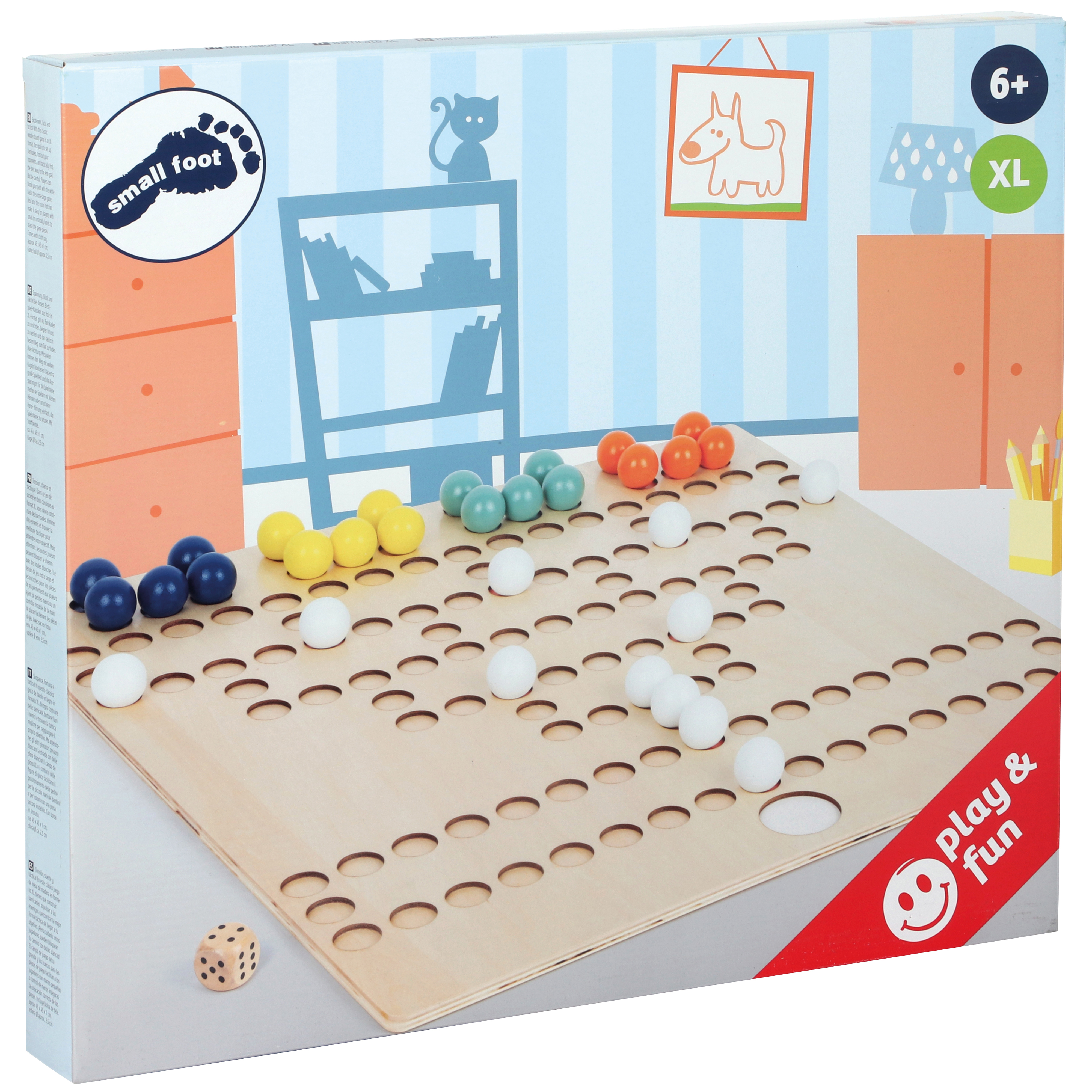 Spannung, Glück und Taktik! Bei diesem Brettspiel- Klassiker aus Holz im XL-Format gilt es, Barrikaden zu errichten, Gegner hinaus zu werfen und den taktisch besten Weg zum Ziel zu finden. Aber Achtung: Mitspieler können den Weg mit weißen Kugeln blockieren! Das extra große Spielfeld und die Aussparungen für die Spielsteine machen es Spielern mit kleinen Händen oder unsicherer Hand- führung einfach, die Spielsteine zu setzen. Mit Stoffbeutel. Kugeldurchmesser ca. 2,5cm.