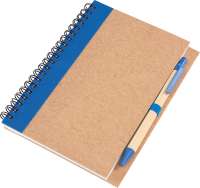 Ringbuch in Bambus-Optik mit 70 linierten Seiten und bunten Haftnotizen, inkl. Kugelschreiber mit blauer Mine.