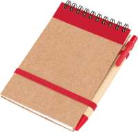 Notizringbuch RECYCLE M: bestehend aus recyceltem Papier / Pappe, 50 Blätter, Kugelschreiber (schwarzschreibend) aus Kunststoff / Pappe, mit Ringlochung und Gummiband als Verschluss und Stiftehalter