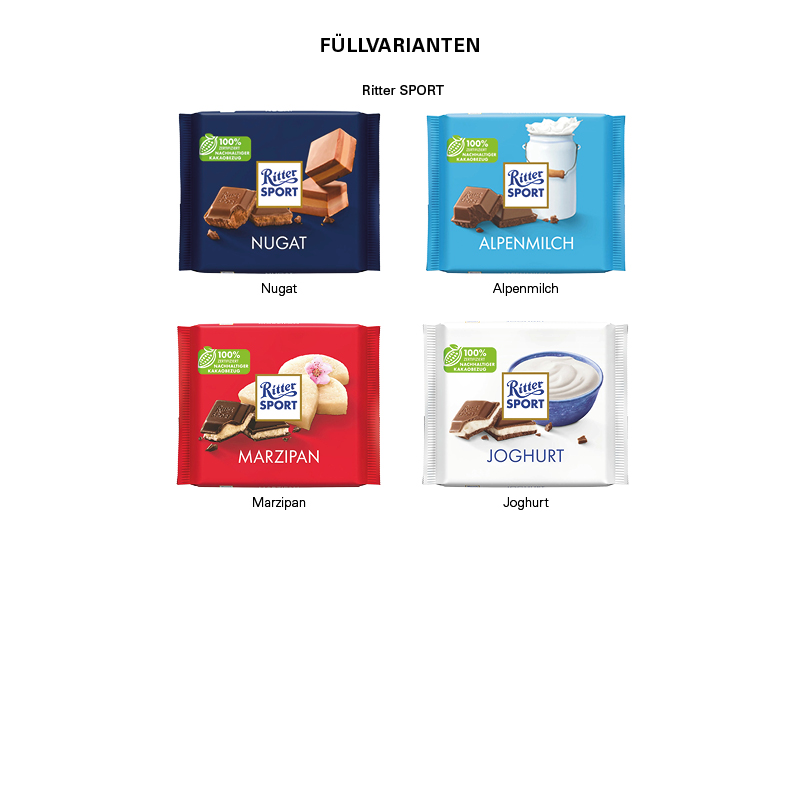 1 Tafel RItter SPORT Nugat oder 1 Tafel RItter SPORT Alpenmilch oder 1 Tafel RItter SPORT Marzipan oder 1 Tafel RItter SPORT Joghurt