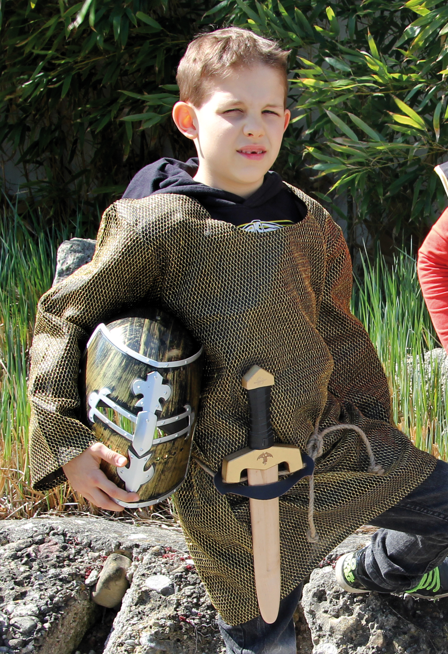 Der edle Dolch aus Holz mit Leder-Griffband macht jeden kleinen Kämpfer zum unerschrockenen Ritter ohne Furcht und Tadel. Länge 40 cm.