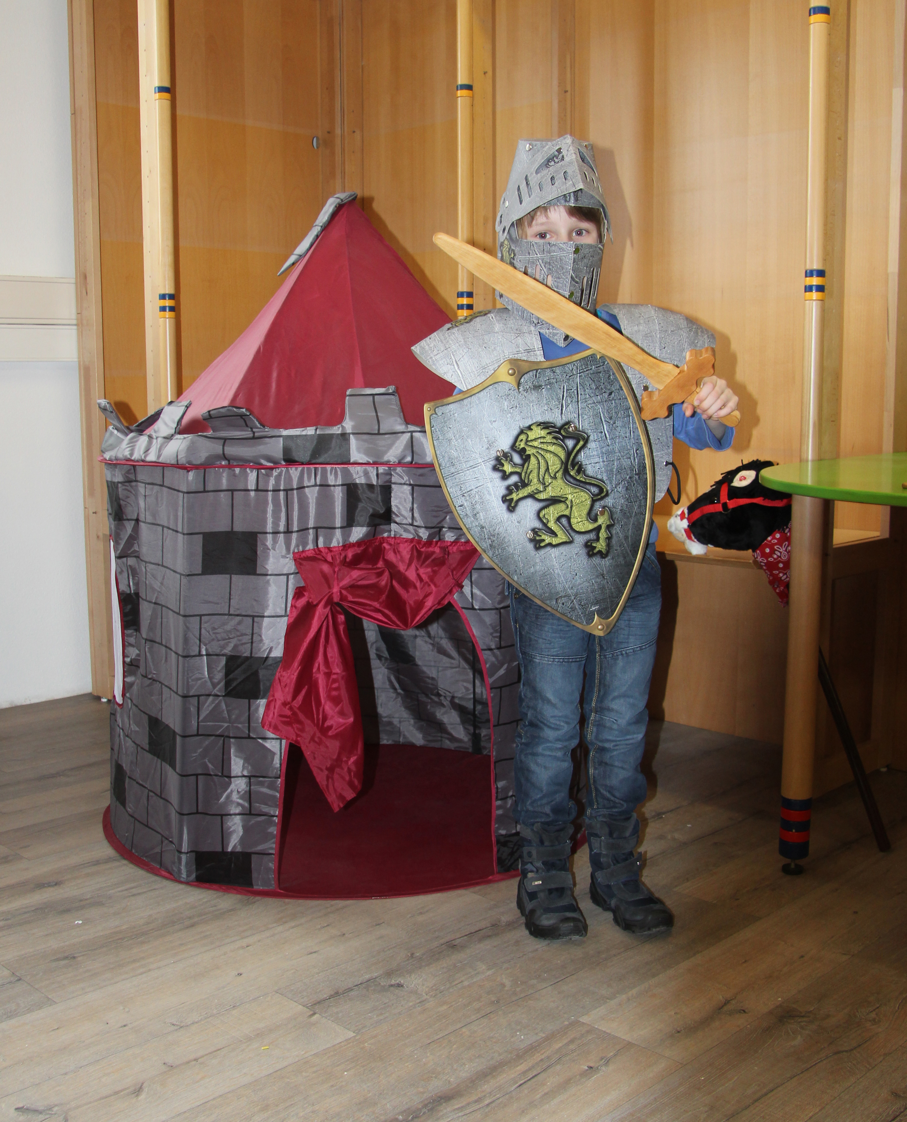 Ein Schild für kleine Ritter. Aus Holz. Mit Leder-Halteriemen auf der Rückseite. Made in Germany.