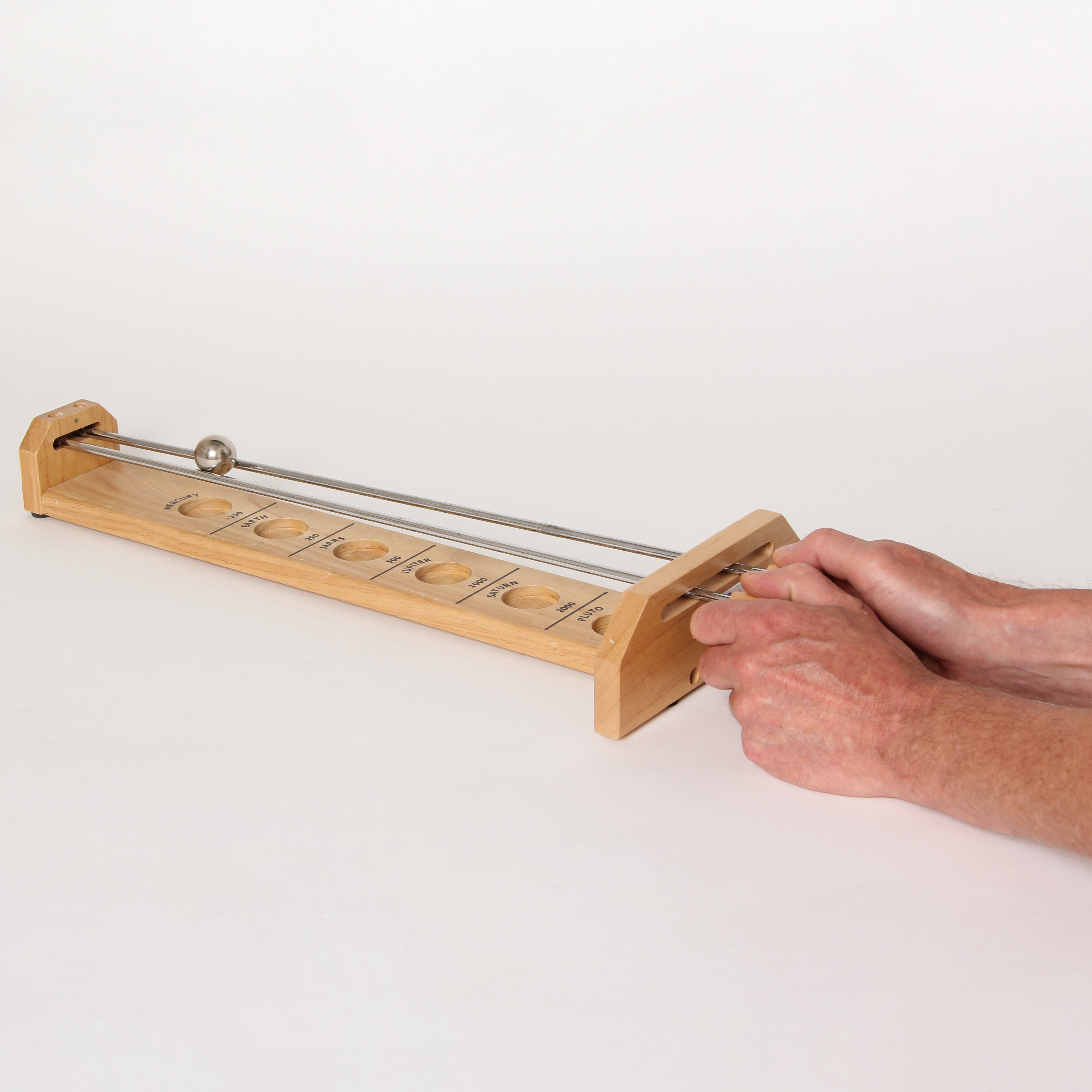 Ziel des Spieles ist es, die Metallkugel mit Hilfe der beiden Metallstangen so weit wie möglich bergauf zu lassen.