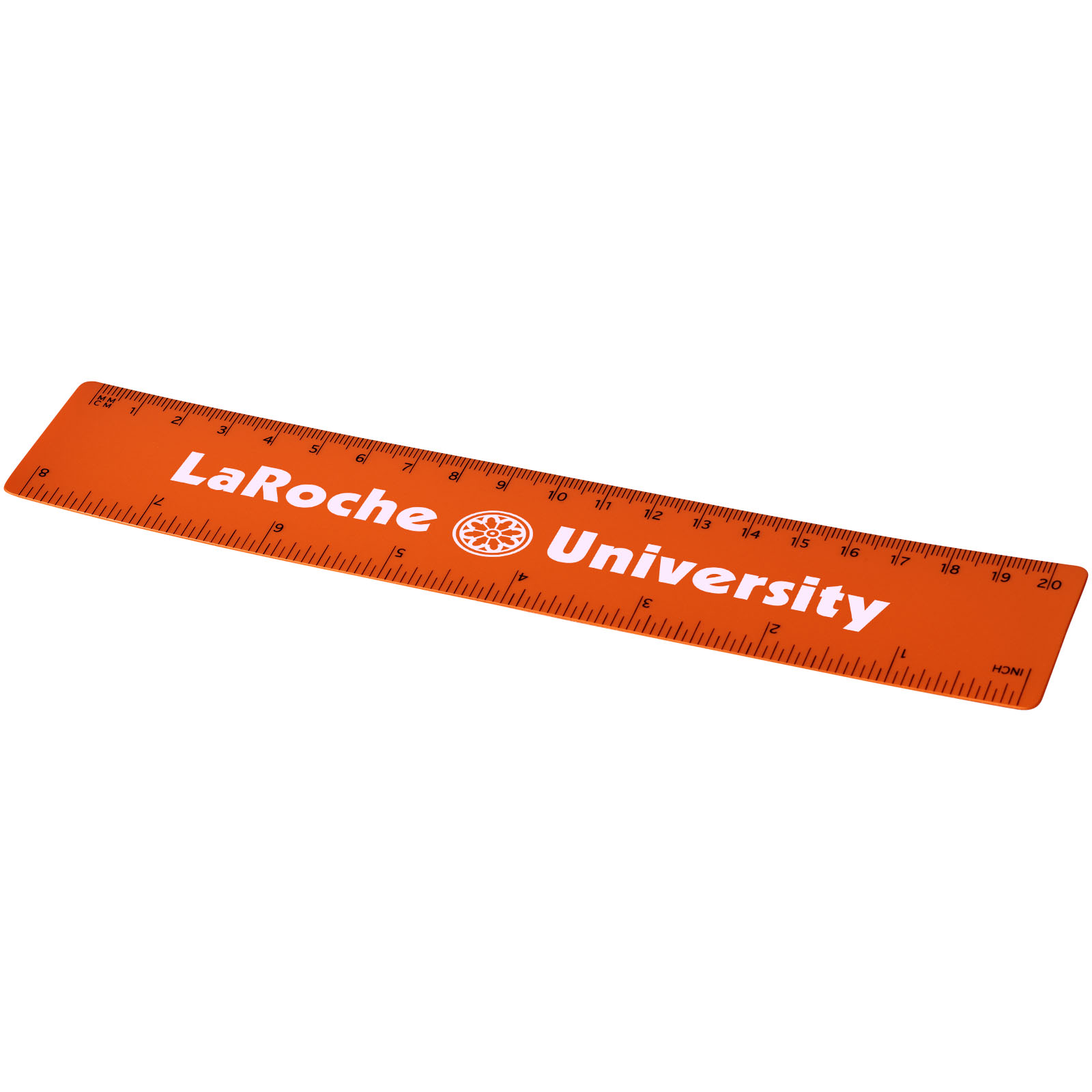 Flexibles, leichtes Kunststoff Lineal mit Markierungen in Zoll und Zentimeter. Bitte beachten Sie, dass die Linealmarkierungen zusammen mit Ihrer Druckvorlage aufgedruckt werden, unveredelte Lineale haben keine Markierungen und sind blank.