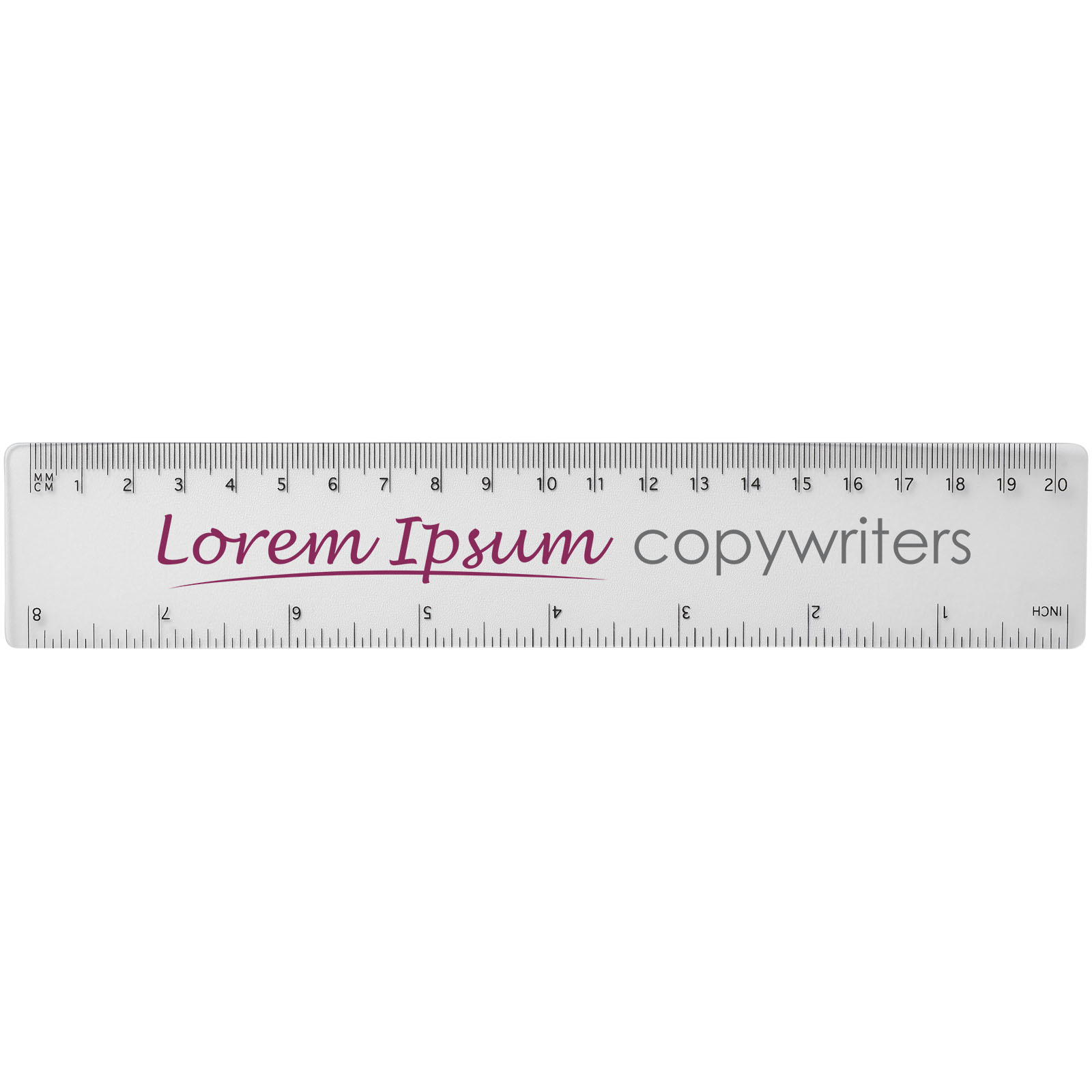 Flexibles, leichtes Kunststoff Lineal mit Markierungen in Zoll und Zentimeter. Bitte beachten Sie, dass die Linealmarkierungen zusammen mit Ihrer Druckvorlage aufgedruckt werden, unveredelte Lineale haben keine Markierungen und sind blank.