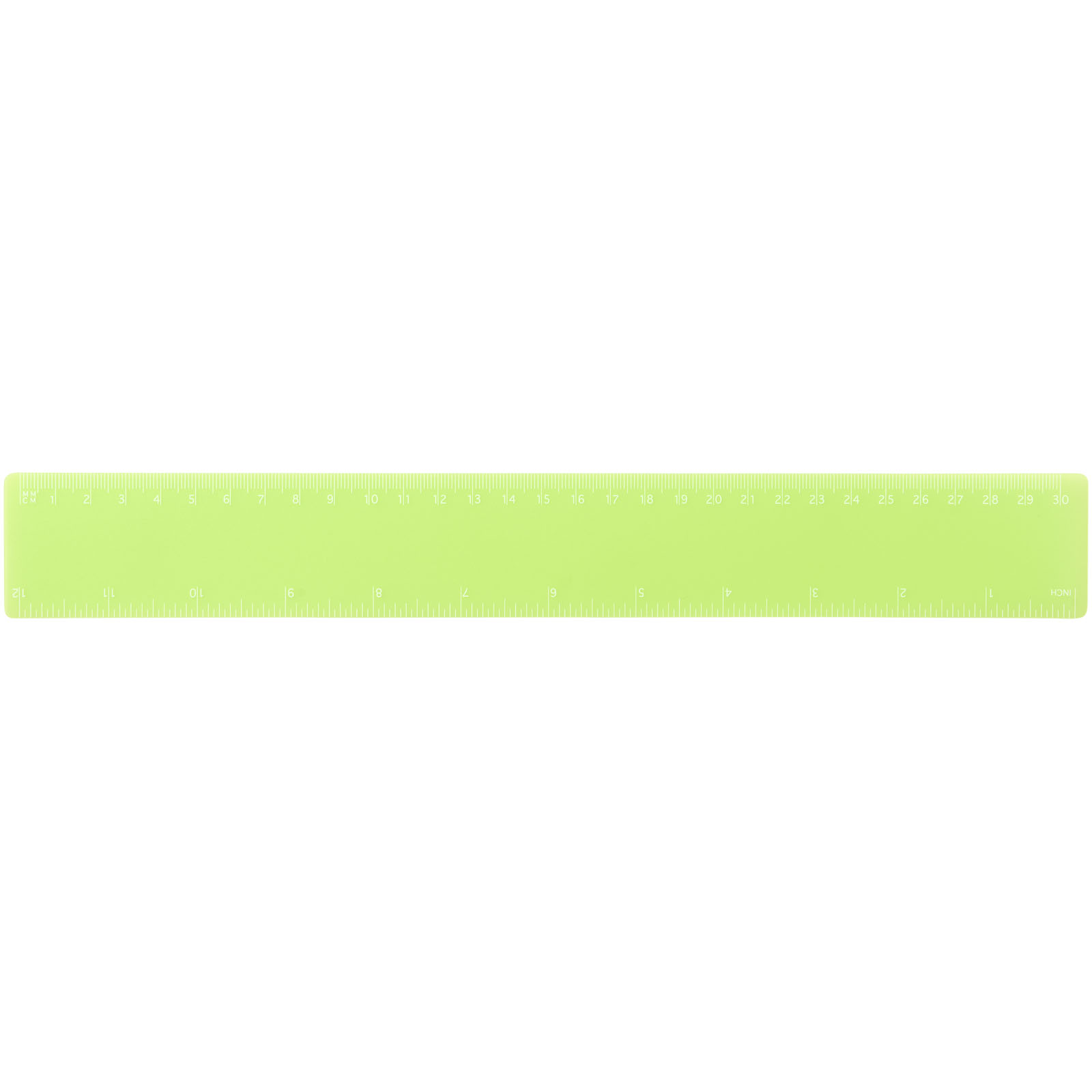 Flexibles, leichtes Plastiklineal mit Markierungen in Zoll und Zentimeter. Bitte beachten Sie, dass die Linealmarkierungen zusammen mit Ihrer Druckvorlage aufgedruckt werden, unveredelte Lineale haben keine Markierungen und sind blank.